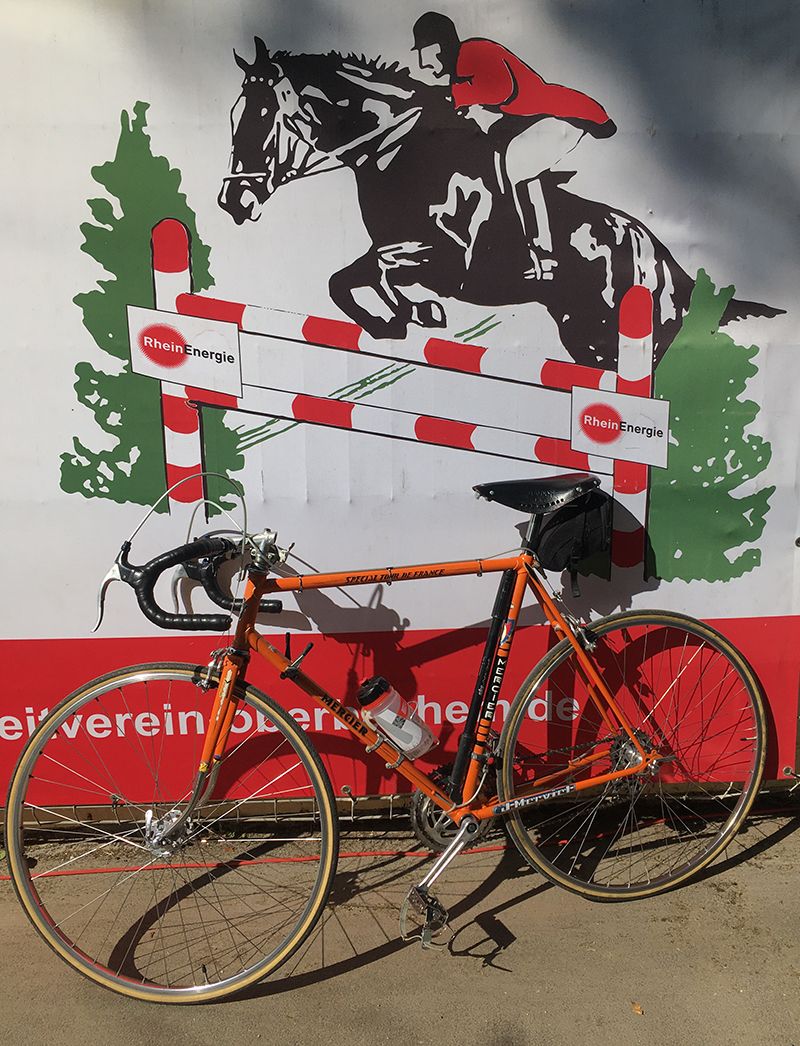heute mal mit dem bunten Spaß-Rad, einem BMZ mit nicht mehr ganz so toller cromovelato-Lasur und dem Regenbogen-Lenkerband (sch... auf Authentizität & Style, ich liebe es