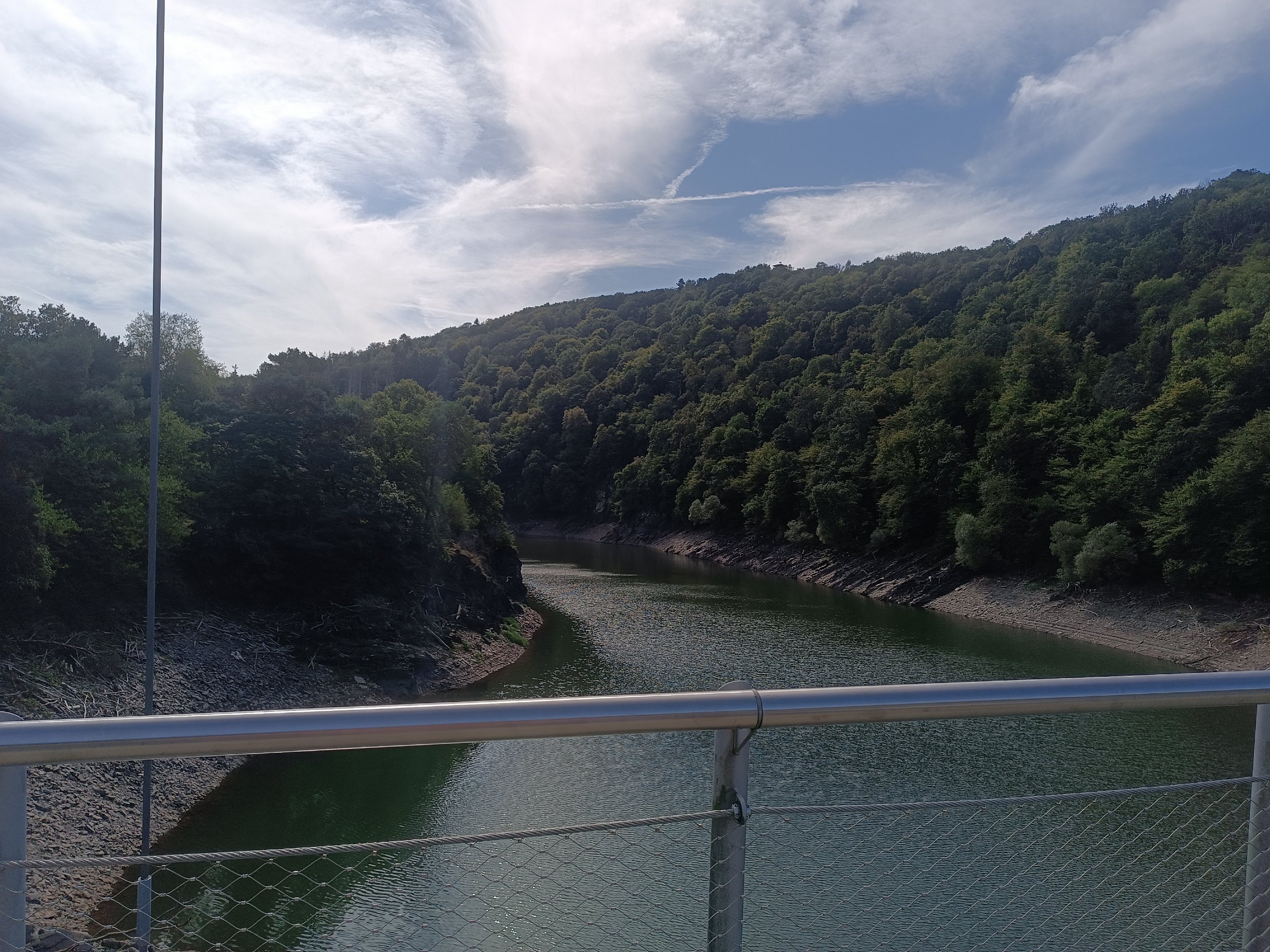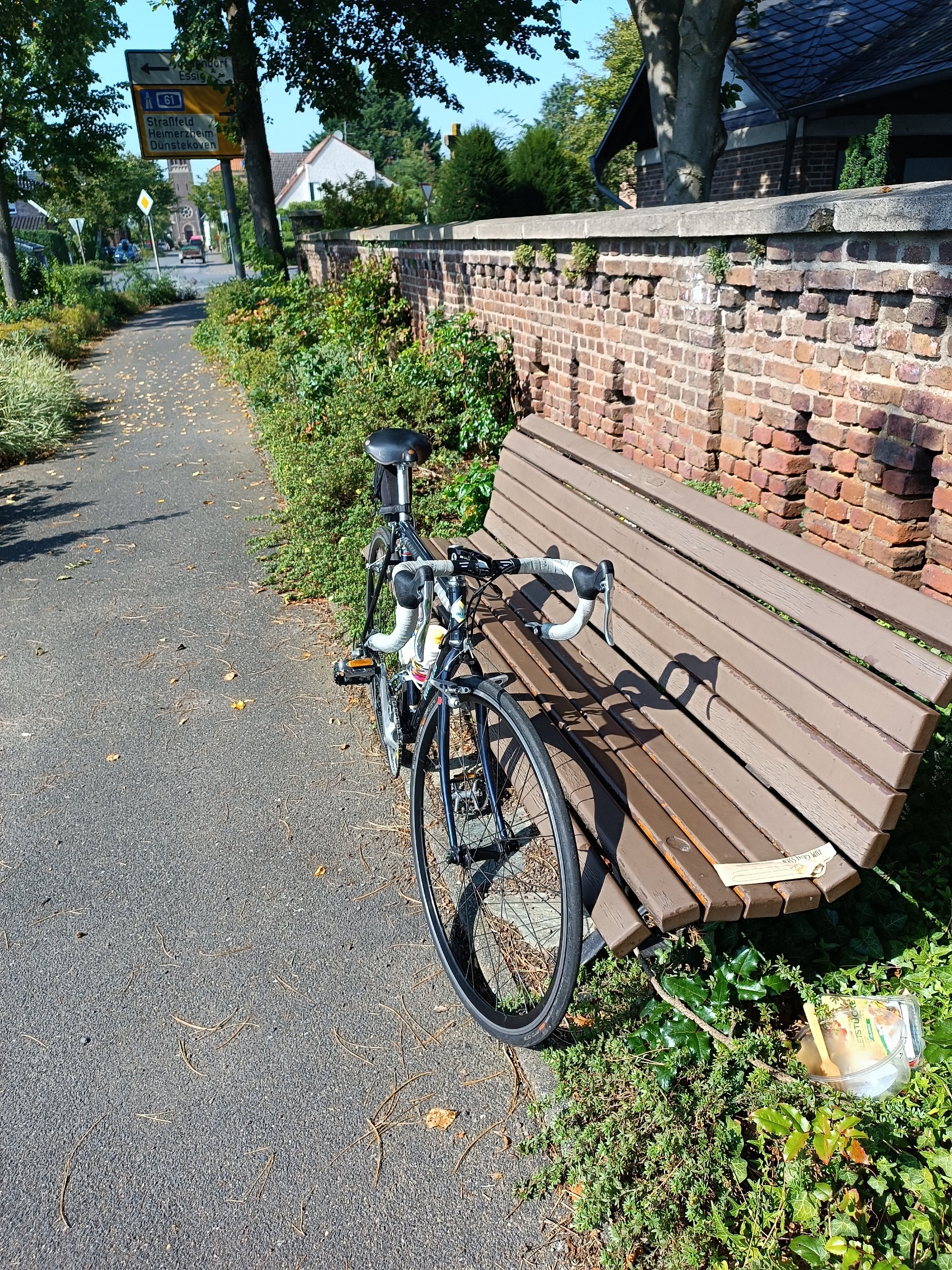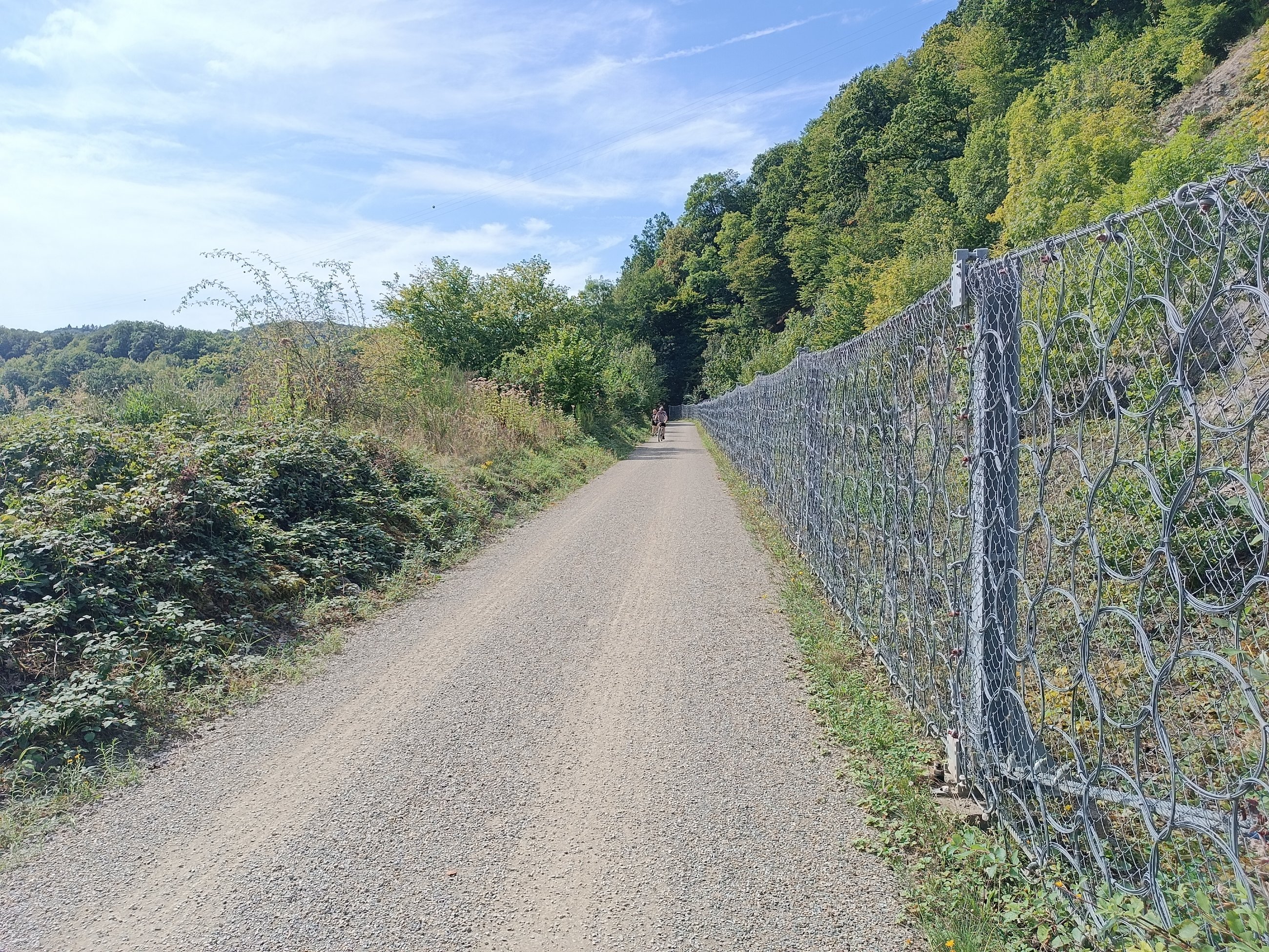 Mit 28ern kann man sich schon auf Kieswege wagen solange die Steine nicht gleich Walnussgross sind und allzu dicht liegen. Bin immer wieder erstaunt was mein Conti Ultra Sport so wegstecktHeute sind wir mit der Bahn nach Kall. Von dort mit den Rädern an den Rursee und da etwas gegravelt. Wobei ist es mit 28er Reifen schon graveln?Dann über Heimbach nach Mechernich. Jetzt im Biergarten und später 2 Haltestelle mit der Bahn nach Hause. Männe mag nicht mehr radeln