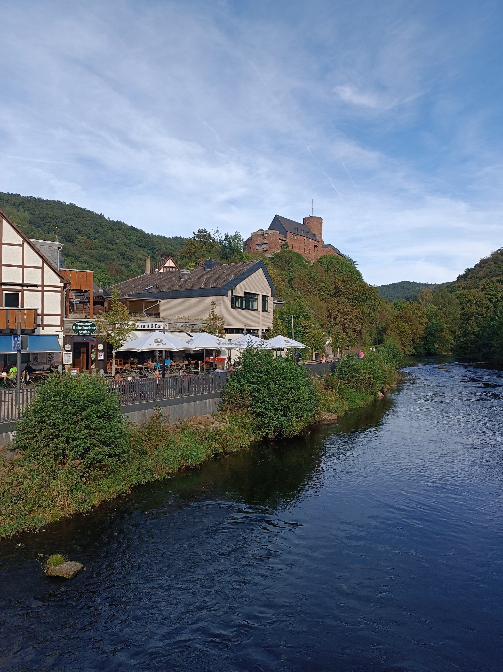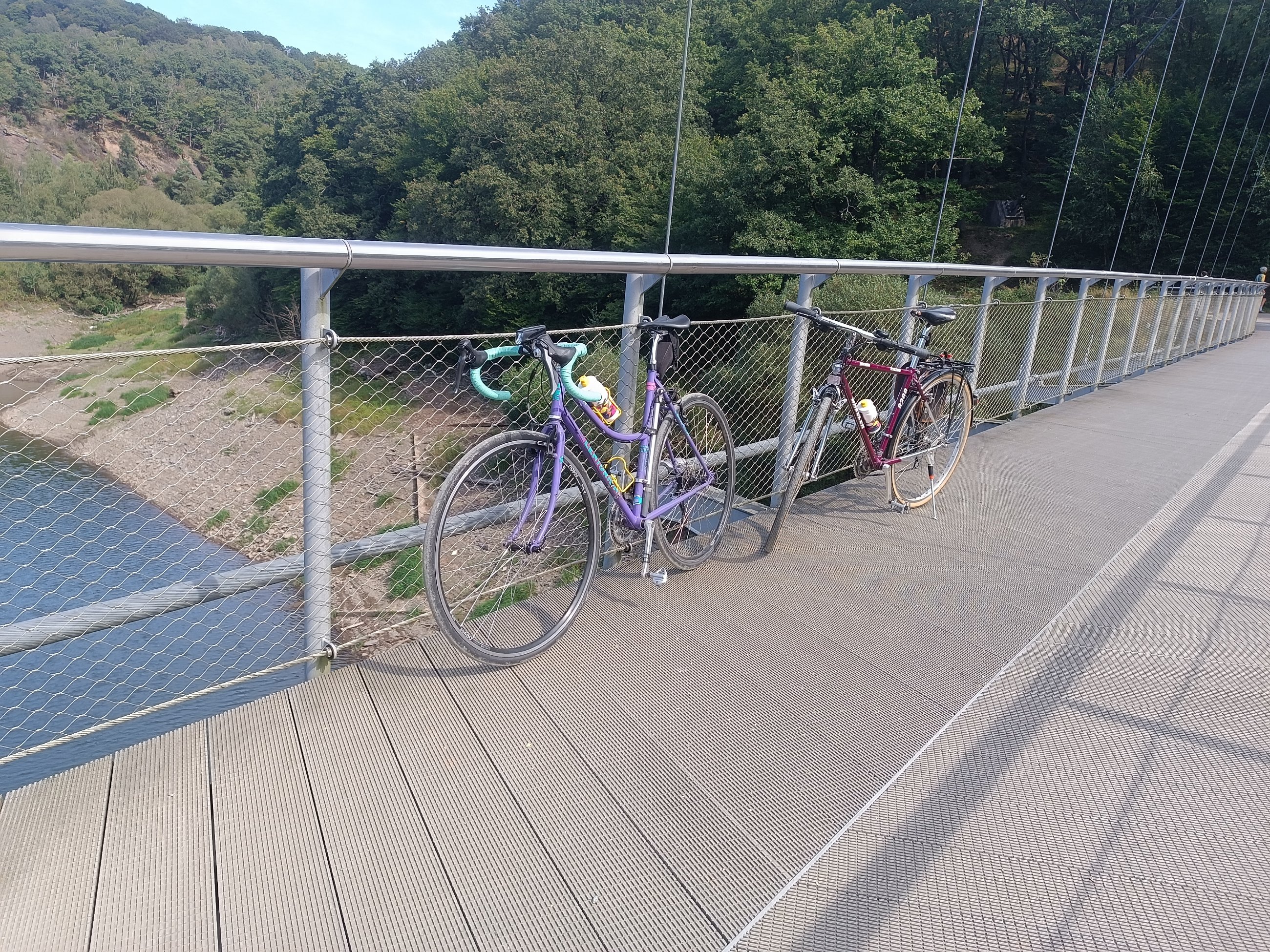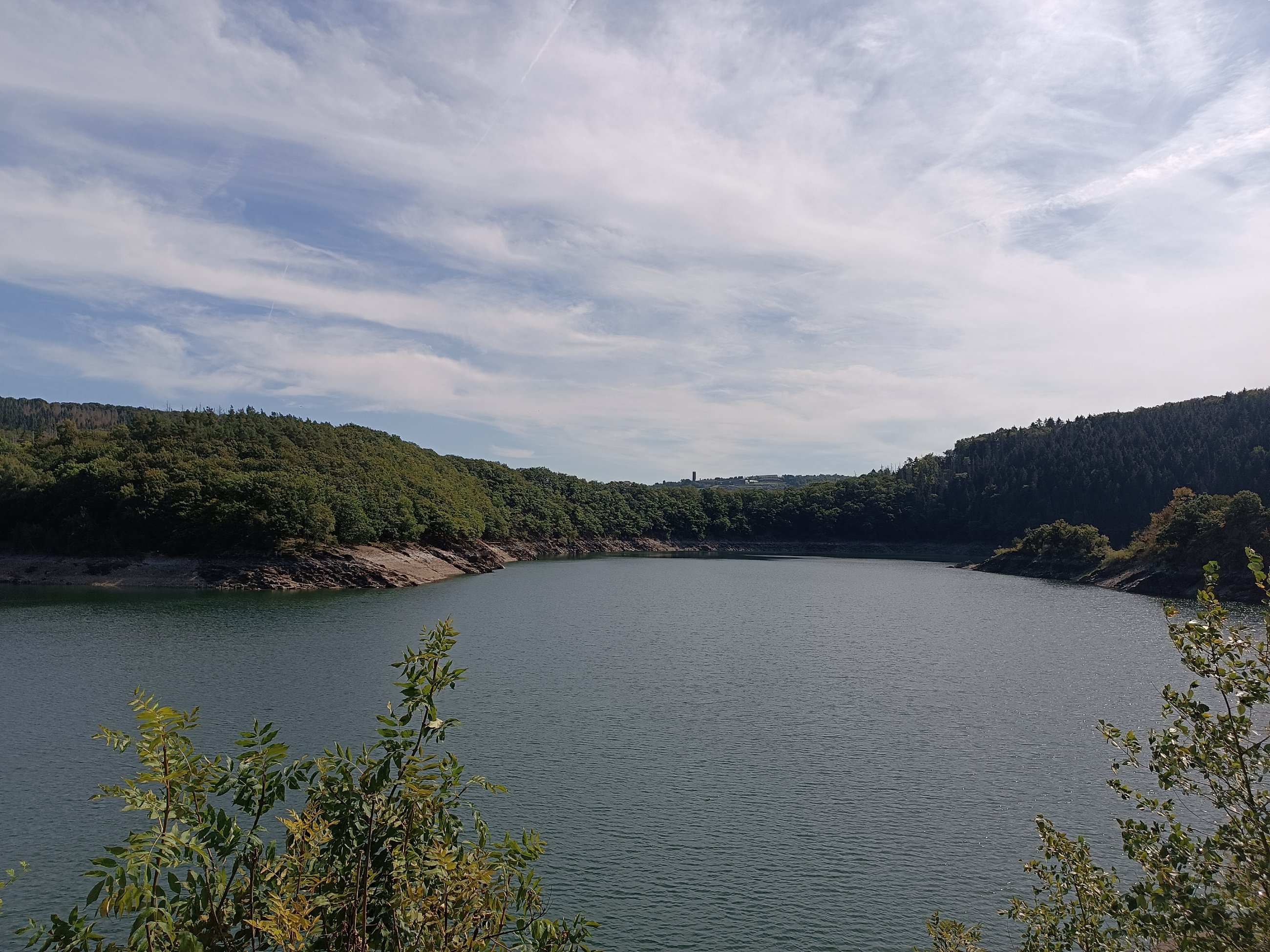 Mit 28ern kann man sich schon auf Kieswege wagen solange die Steine nicht gleich Walnussgross sind und allzu dicht liegen. Bin immer wieder erstaunt was mein Conti Ultra Sport so wegstecktHeute sind wir mit der Bahn nach Kall. Von dort mit den Rädern an den Rursee und da etwas gegravelt. Wobei ist es mit 28er Reifen schon graveln?Dann über Heimbach nach Mechernich. Jetzt im Biergarten und später 2 Haltestelle mit der Bahn nach Hause. Männe mag nicht mehr radeln