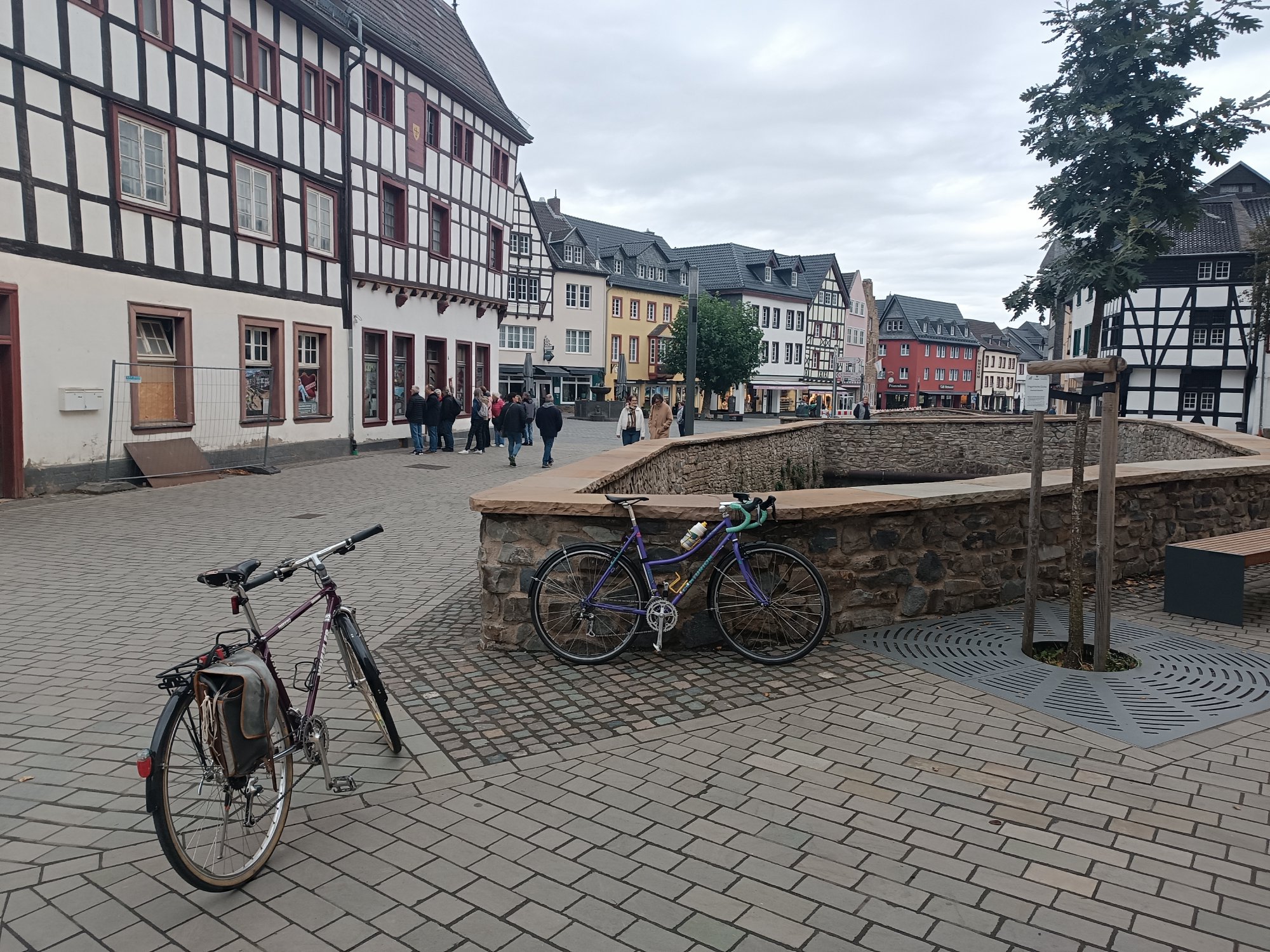 Was ist denn das für ein eigenartiges Verkehrsschild auf Foto 1?Heute eine kurze Tour mit meinem Mann, nach Bad Münstereifel und zurück. Für mehr war es ihm auf dem Rad dann doch zu frisch. Vor der Fahrt habe ich noch schnell SKS Schutzblechen, die es letztens in neue bei KA gab, an meine Toscana gemacht.