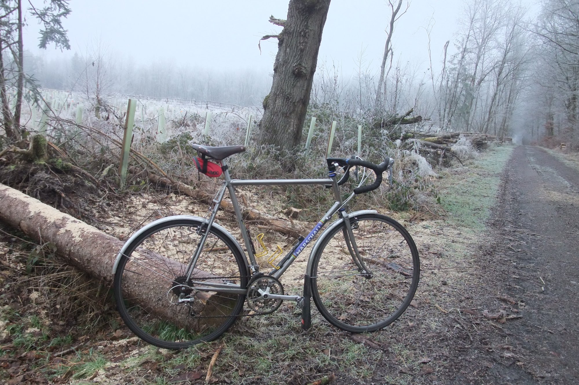 Obwohl ich seit zwei Jahren hier ja nur ungern wohne, habe ich doch brauchbare Gelegenheiten in der Nähe, um auch mal im Winter zu fahren. Fahrerisch anspruchslos, kurz und langsam oder kurz und heftig, je nach Lust, Wetter und Fähigkeiten. Über zwei Stunden bei Frost im Wald rumeiern mag ich sowieso nicht, aber die sind jetzt wenigstens schön anzusehen.