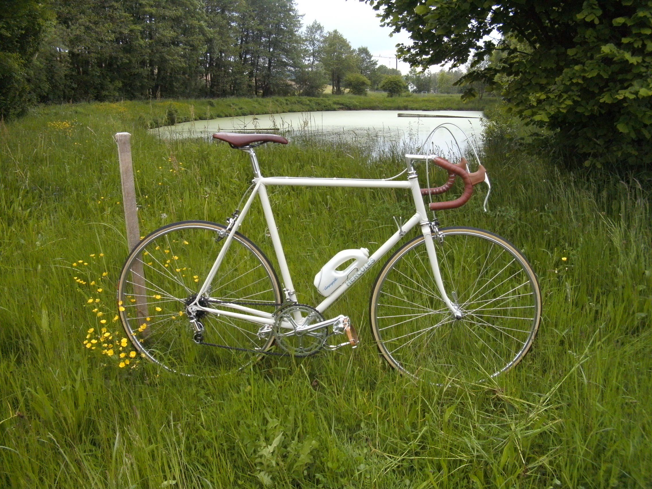 zu dem Ding passt sogar der braune Sattel und das braune Band, was man durchaus als Seltenheit betrachten kann.60 km Nachmittagsrunde, leider die letzten 10km im Regen. Gut , dass ich wieder die "Taucheruhr" anhatte