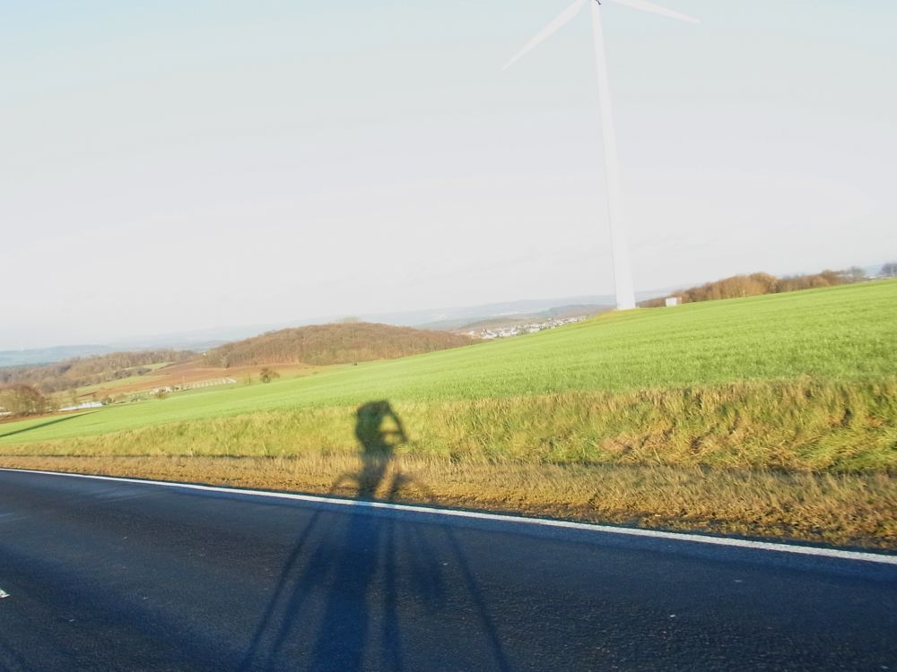 Hier bin ich kurz vor dem Höchst, unweit Diez/lahn - die höchste Erhebung des Landstrichs, garniert mit Windkraftanlagen der Skandalfirma EnBW . Fast schon denkmäler der Goldgräberstimmung für große Rotoren...
