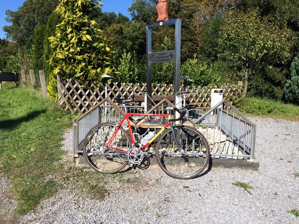Vorbei am Eulendenkmal, das gerade renoviert wird. War wohl zu morsch geworden weil sich keiner darum gekümmert hat und man hat das Holz nicht richtig getrocknet bevor es zum Denkmal aufgestellt wurde. Wird durch den RSV Unna renoviert.