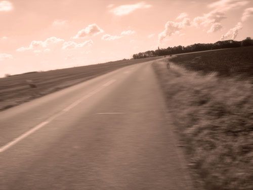 Der Nachteil von topfeben: die Zeit geht nicht rum. Man fährt und fährt und hat das Gefühl, man kommt nicht an. Das verursachte in mir eine große Wehmut und ich befand die ganze Gegend eher trostlos. Mit all dem Grau. Und den ehemals als Bundesstraße bezeichneten Land- oder Kreisstraßen. Am Horizont der zivilisatorische Fortschritt, schön und gut. Aber ich dachte auch an die Menschen, die jetzt gerade irgendwo auf gepackten Koffern saßen, weil die wieder in ihre Häuser wollten, die sie nur kurz verlassen sollten, bis der Bagger wieder weg war. Hatte denen ja keiner gesagt, dass der Bagger nicht so schnell fahren kann...