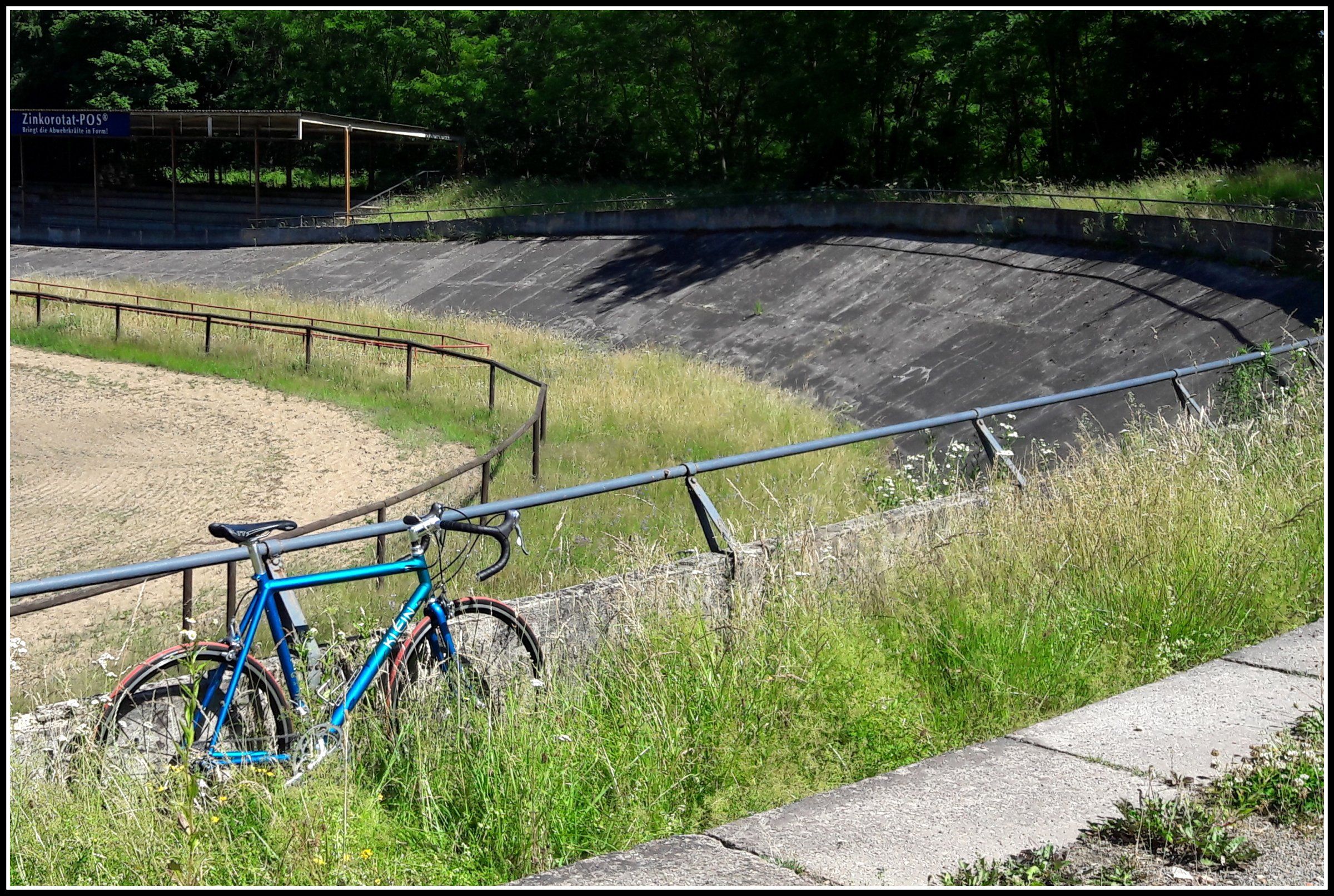 Ich war grad mal per Satelit dort. Kann es sein, daß die blöden Reitöppel da einfach ein Stück in der Gegengerade rausgebrochen haben um ihre Gäule besser zum Barren zu bringen ? Die Bahn sieht sehr schön aus ... forgotten places ...Hab dann auch das erste mal seit langen Jahren einen Abstecher zur alten Radrennbahn gemacht. Schade, dass sie nicht mehr genutzt wird, aber auch gut, dass sie so abgelegen im Wald liegt. Dadurch wird sie ihren Dornröschenschlaf wohl noch lange geniessen dürfen!