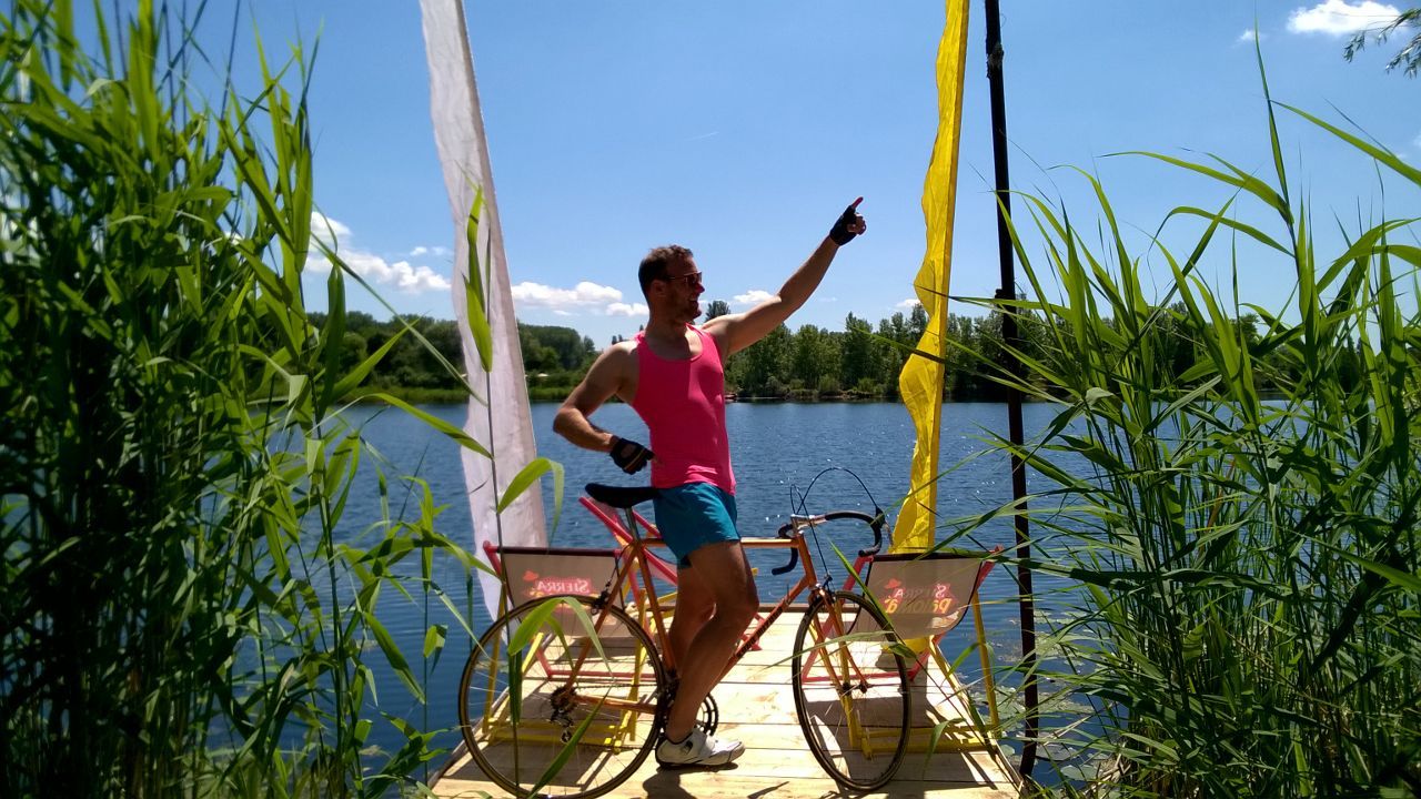 Oh la la, scharf, sehr scharf das Rad! Allerdings ist Dir die geliehene Hose eindeutig zu groß.![]()