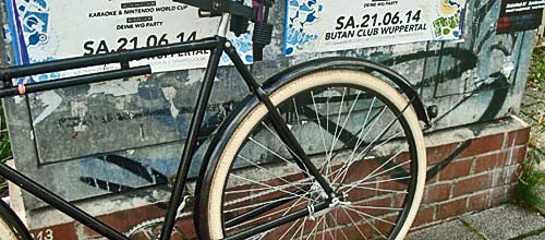 Ich hatte mich nur für einen Moment von der Architektur beeindrucken lassen und schwupps, schon hatte ein Künstler mit ein paar flott gezogenen Linien mein Rad in die Architektur integriert!