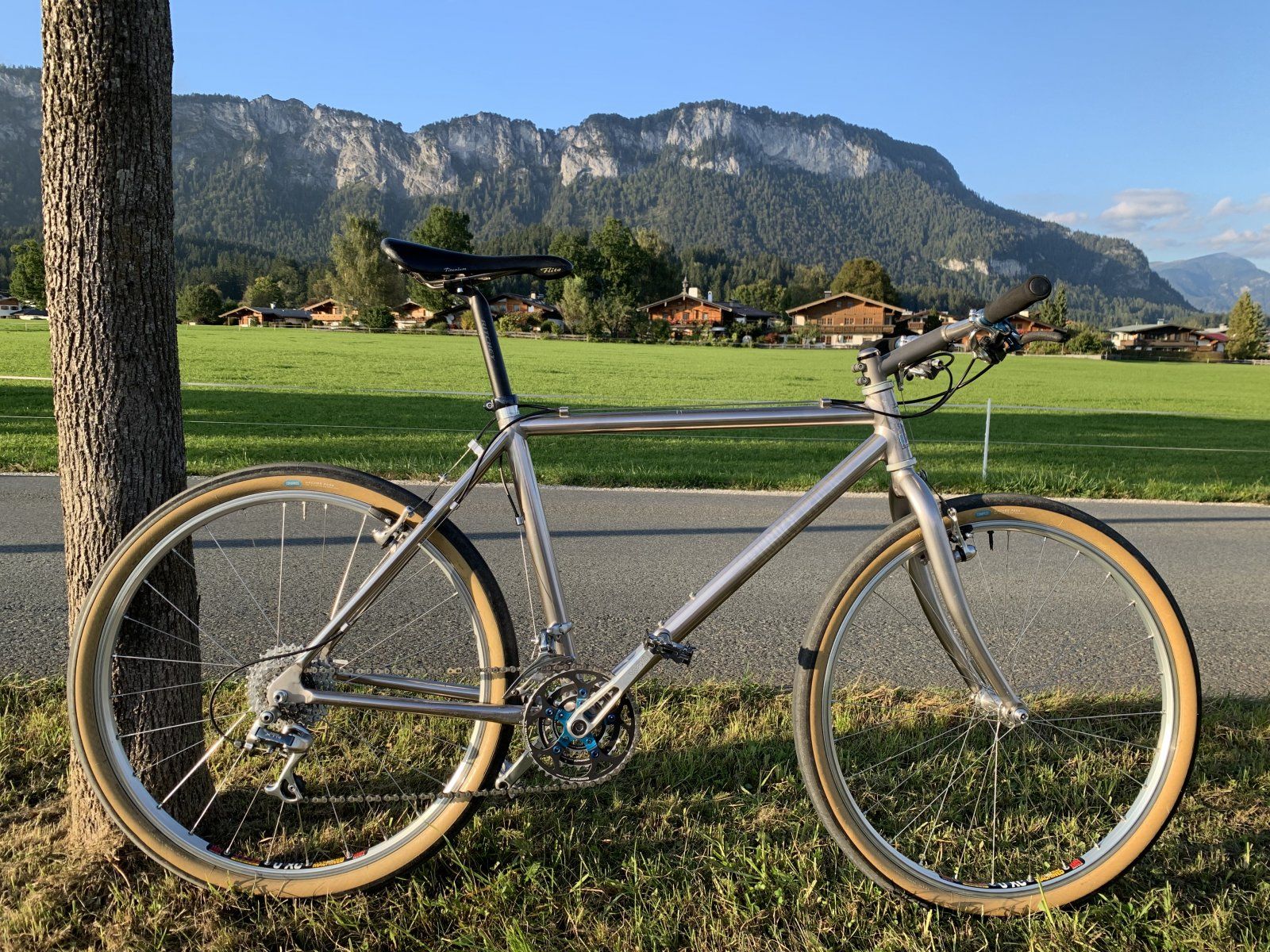Tolle Aussichten gibt es hier ja überall. Da ist im Hintergrund der Hahnenkamm in Kitzbühel und irgendwo davor auch den Laden von Steinbach, die immer noch außergewöhnlich leichte Räder bauen.