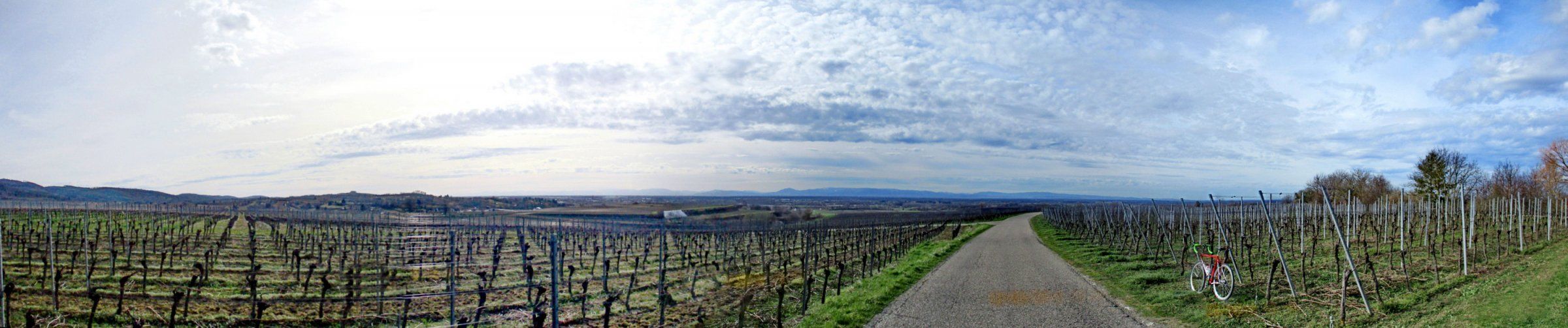 Ein Stueck weiter, vor dem Beginn der Abfahrt habe ich einige Meter neben der Strasse ein windgeschuetzes Eckchen zum Radabstellen gefunden. War schon besser das Rad etwas einzuhaken, so ganz alleine hatte es schon eine gewisse Tendenz dem Wind zu folgen ...