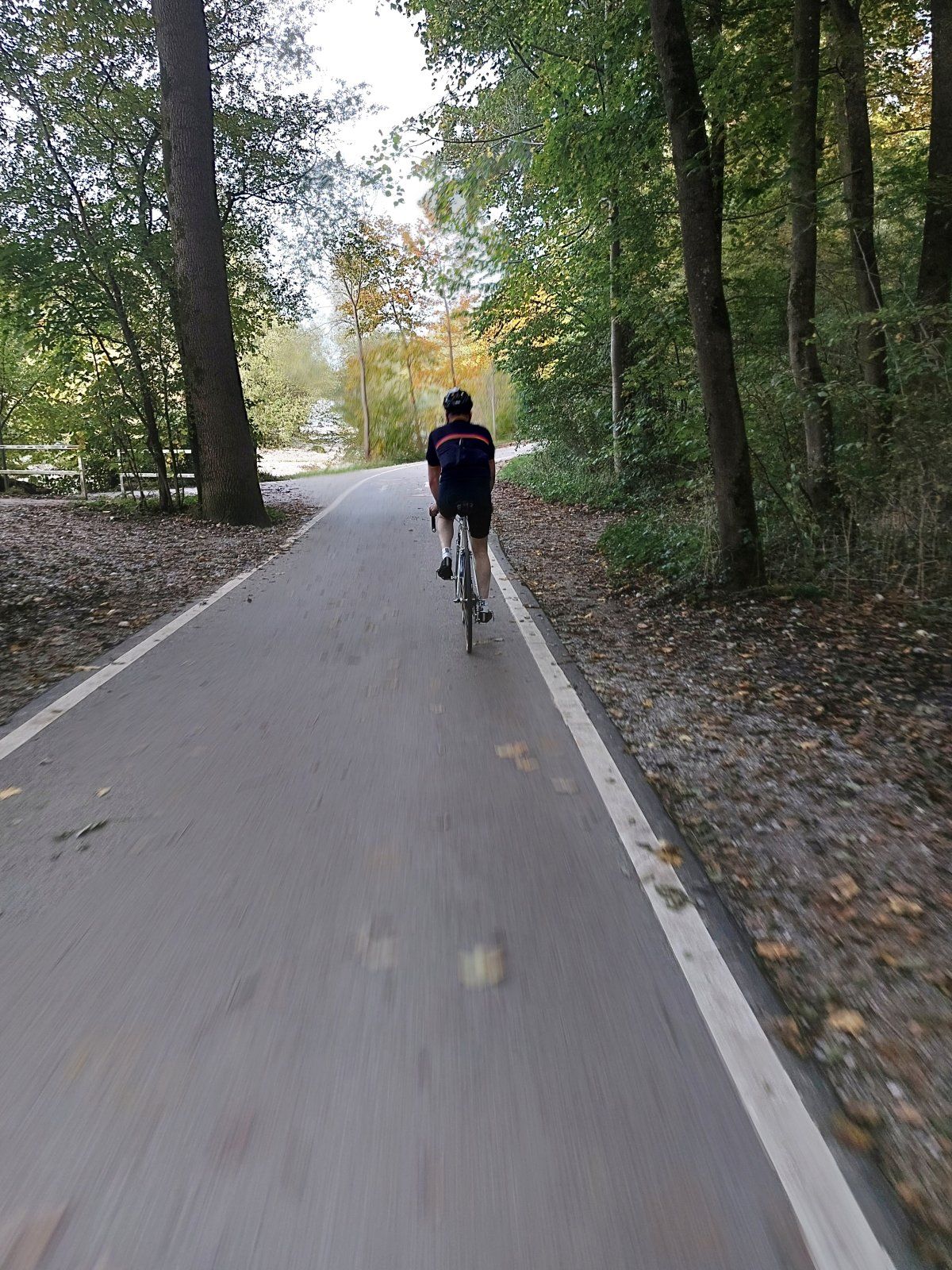 Ich schnappte mir also meinen zuverlässigen Fitness-Racer aus Stahl und düste los.....ja, auf der Hinfahrt "düste" ich los, denn ich wollte es dem inneren Covid-Schweinehund zeigen und trat verbissen in die Pedale. Ich muss doch einfach mal wieder an die alte "Form" anknüpfen können ! Klar erzwingen kann man nichts, aber es bringt auch nix jammernd auf der Couch zu hocken.