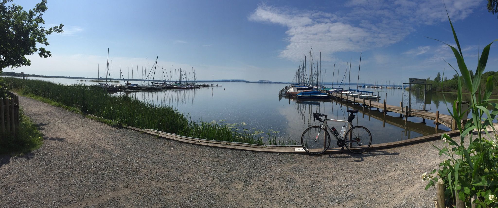 Noch schnell ein paar gefüllte Croissants gekauft und dann ab! Eigentlich hätte ich gerade durch heimradeln können, wollte aber auf meine Kilometer kommen und habe mir einen Bogen um den See eingebaut.