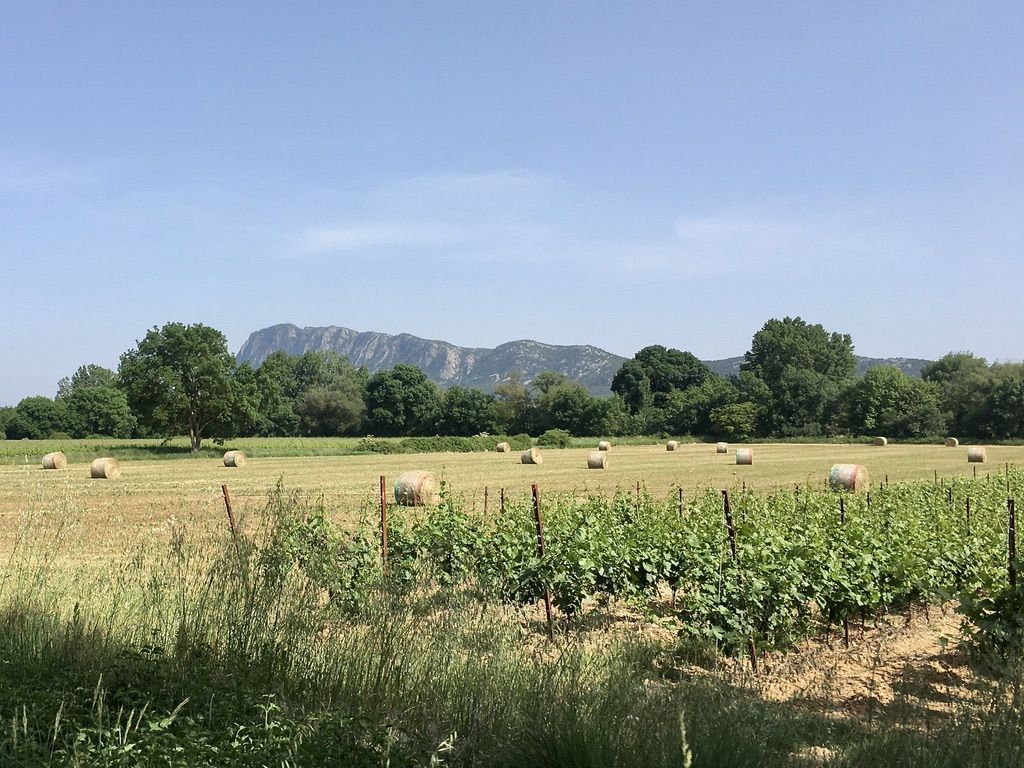 Blick auf den Pic Saint Loup, Languedoc.
