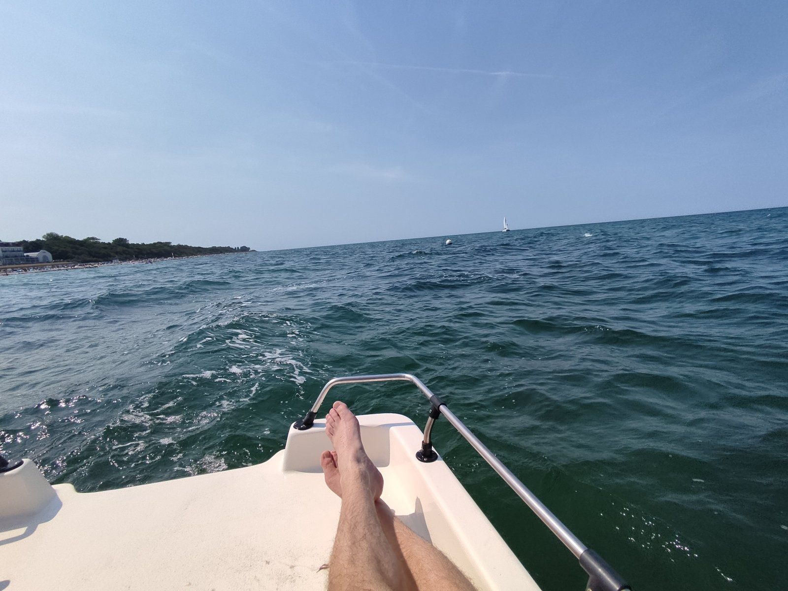 Es war 14 Uhr irgendwas als wir in See stachen. Einmal durch die Wellen nach Dänemark und zurück nach KühlungsbornHeute morgen wars ja spiegelglatt. Den Wellen nach zu urteilen wars aber eher später Vormittag oder gar Mittag?