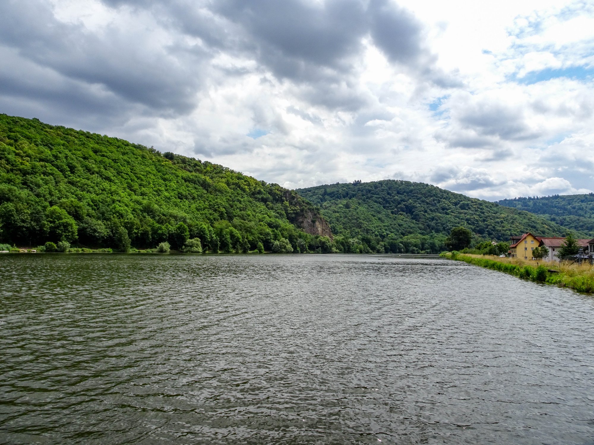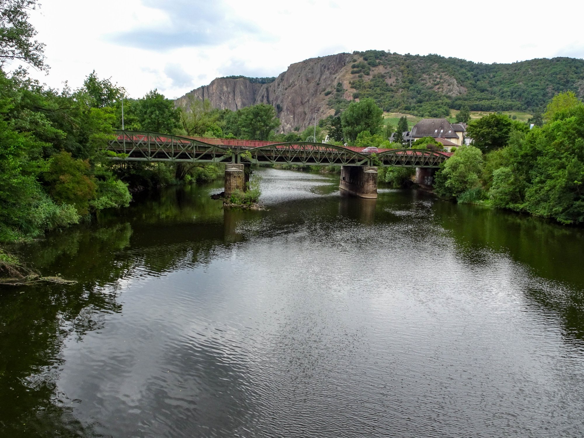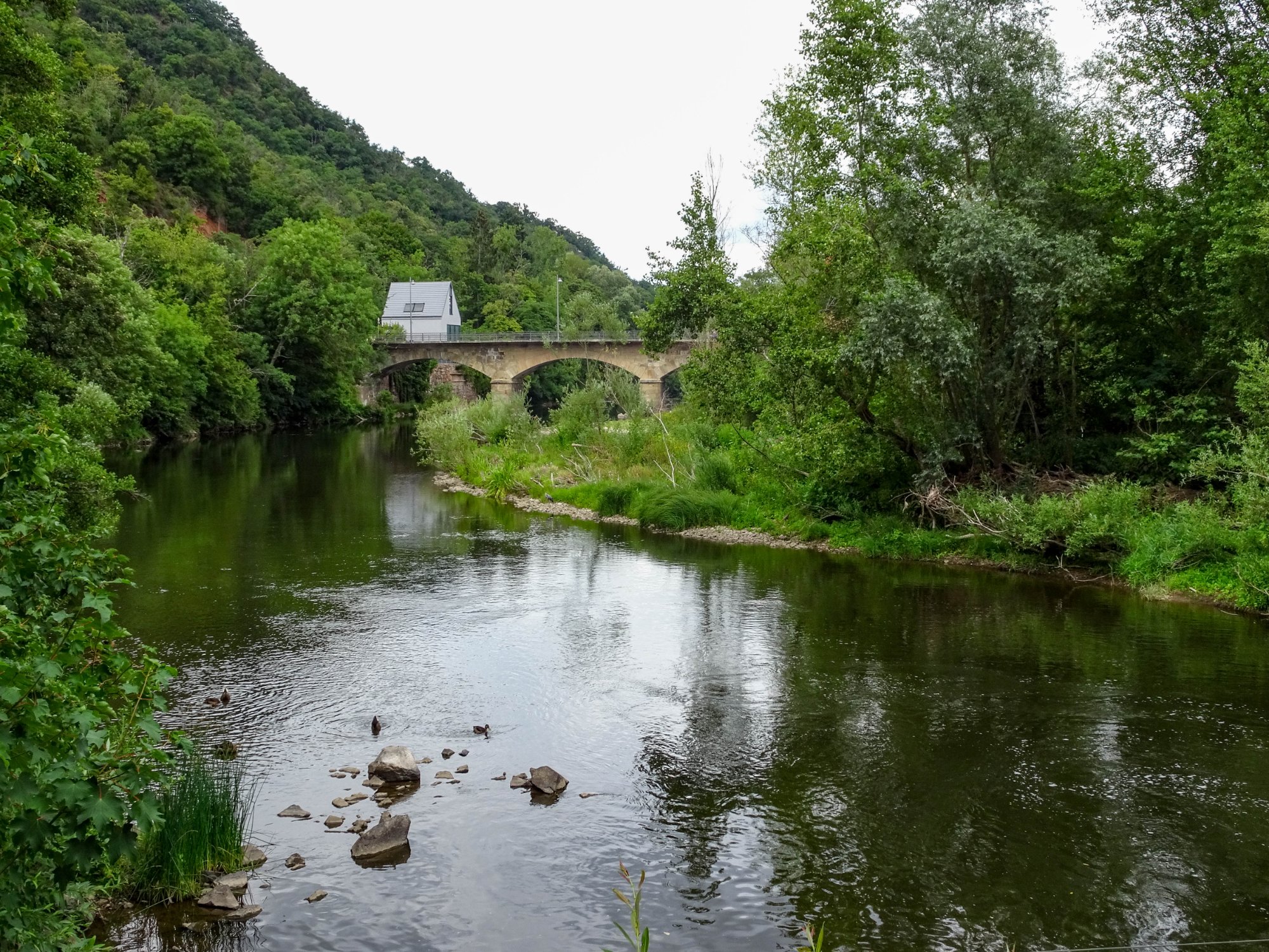 Wieder im Tal angekommen streift und überquert man einen idyllischen Stausee und erreicht dann über einen Bahntrassenweg Bad Kreuznach. Und dort muss man aufpassen, da es ca. 5min nach Ankunft zu Regnen beginnt!