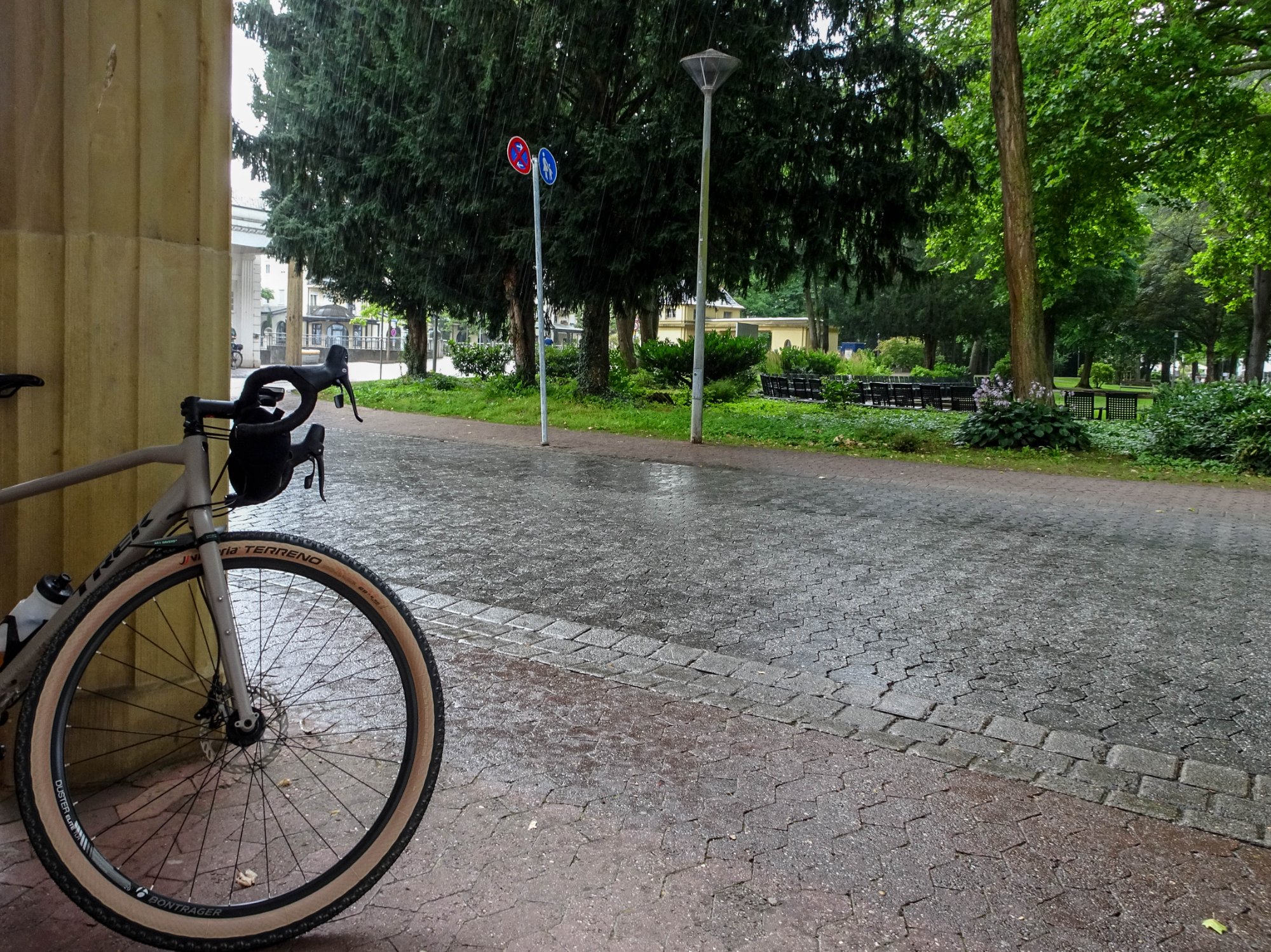 Dann geriet ich auf einmal in einen heftigen Schauer, der erste, der dem armen Specialissima widerfuhr. Ich musste mich erst mal unterstellen. Danach hatte ich aber Glück, nach 5 Minuten Fahrzeit waren die Straßen wieder trocken und ich kam um die nächsten Schauer gerade so herum.