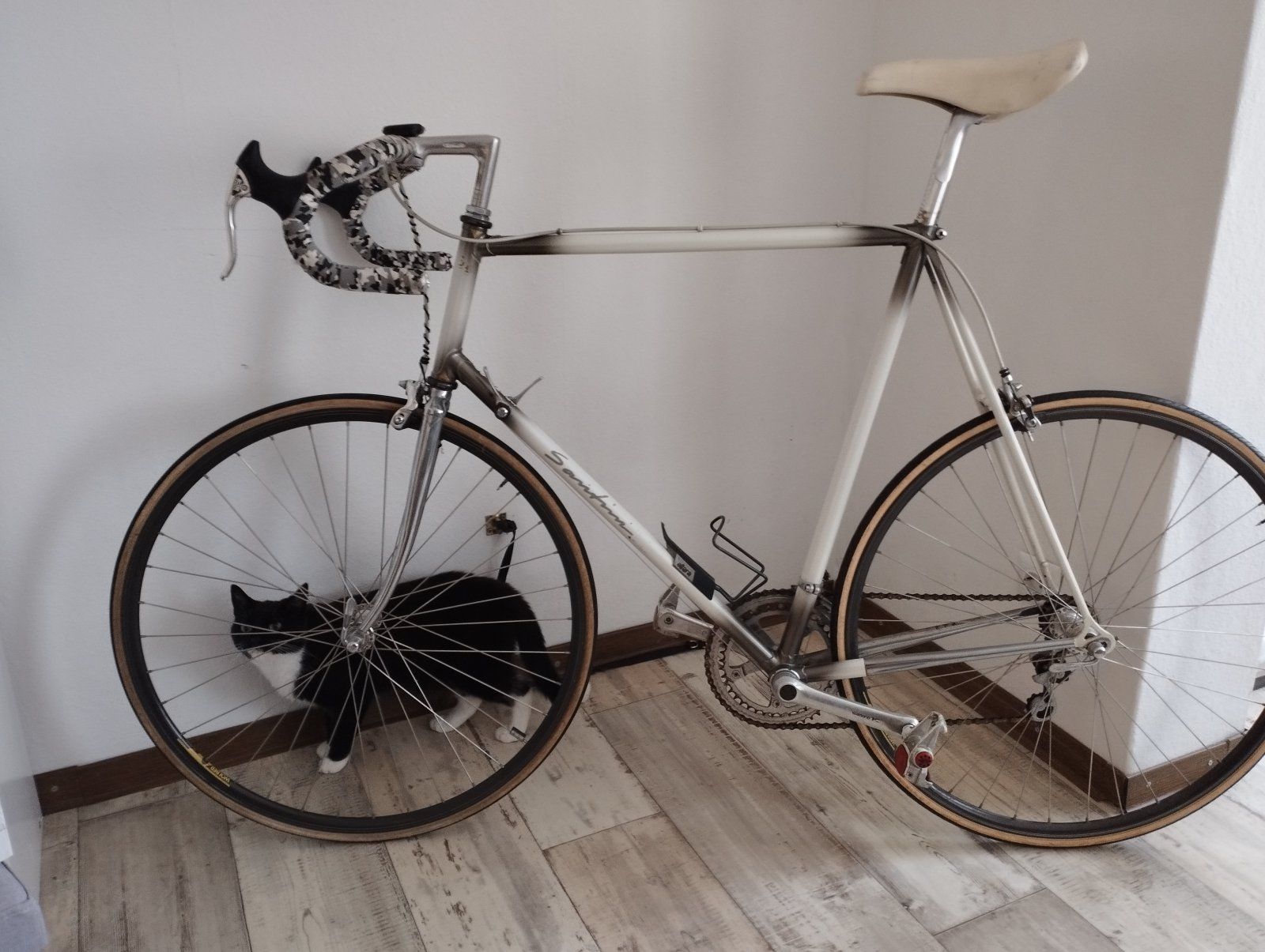 - bei dem vorhandenen Raleigh erst mal Sattelhöhe und Sattelneigung ordentlich einstellen (Tipps dazu gab es hier ja bereits). Dass zeitgenössische Sattelstützen für uns Langbeiner oftmals zu kurz sind, hat
