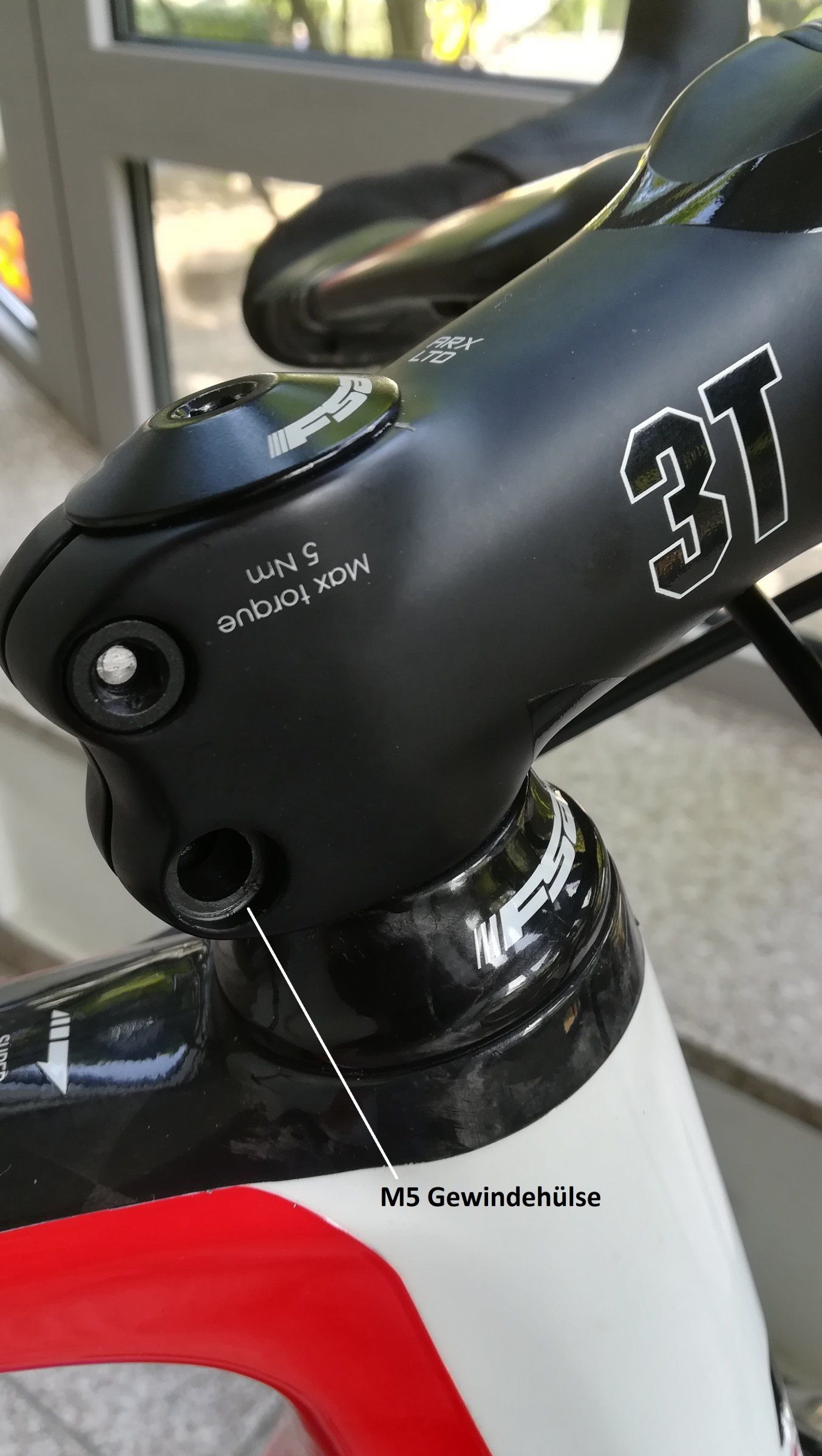 War meine eigene Blödheit das die Hülse gebrochen ist. Habe die Schraube statt wie auf dem Vorbau mit 5Nm angegeben mit 6Nm angezogen und schon wars passiert. Nur weil ich auf die Drehmomenttabelle meines alten Rennrades geschaut habe, da war aber M6 verbaut.