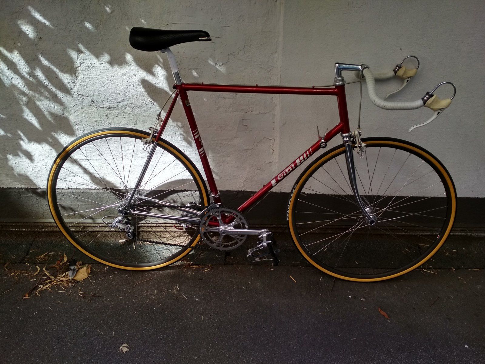 RIP: Rahmen gestaucht - Am Ende ohne Hoods alias Griffgummis, schwarzes Benotto Porfessionale Lenkerband , 2cm mehr Sattelstützenauszug (3ttt Aerodinamico NOS/NIP in Alben irgendwo auffindbar/sichtbarlich..) Mavic Ref. 355 sieht man ja:D.