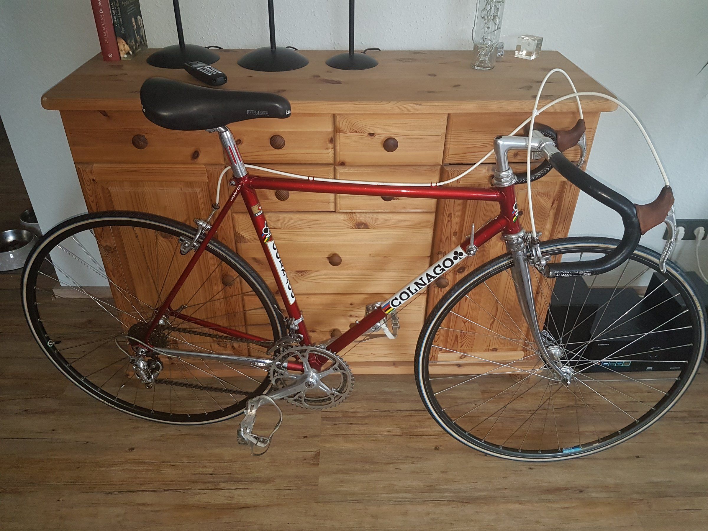 Gekauft hier aus dem Forum von @chris tirol - Zustand war vorher schon super - nur schon lange nicht mehr bewegt. Alle Lager wurden neu gefettet. Neuer Sattel, FlaHa, Reifen, Züge, Hüllen (die sind heller grau, als es auf dem Bild scheint) und von der Geschmackspolizei :)genehmigtes LB. Wirkt jetzt alles nicht mehr so blaß. Wenn ich denn irgendwann mal die sch... Erkältung loswerde freue ich mich auf eine Probefahrt.