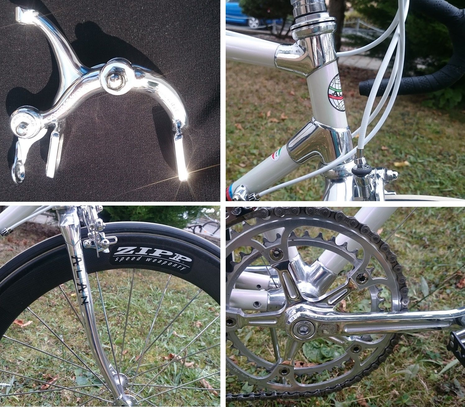 wenn du den Alan meinst, nein da wurde kein einziges Teil verchromt. So wie der @derArmin es auch sagte, ich habe die Muffen und alle Teile einzeln selber auf Hochglanz Poliert. Dann wurde der Rahmen in Perlmutt weiß lackiert und mit Campagnolo Super Record aufgebaut.
