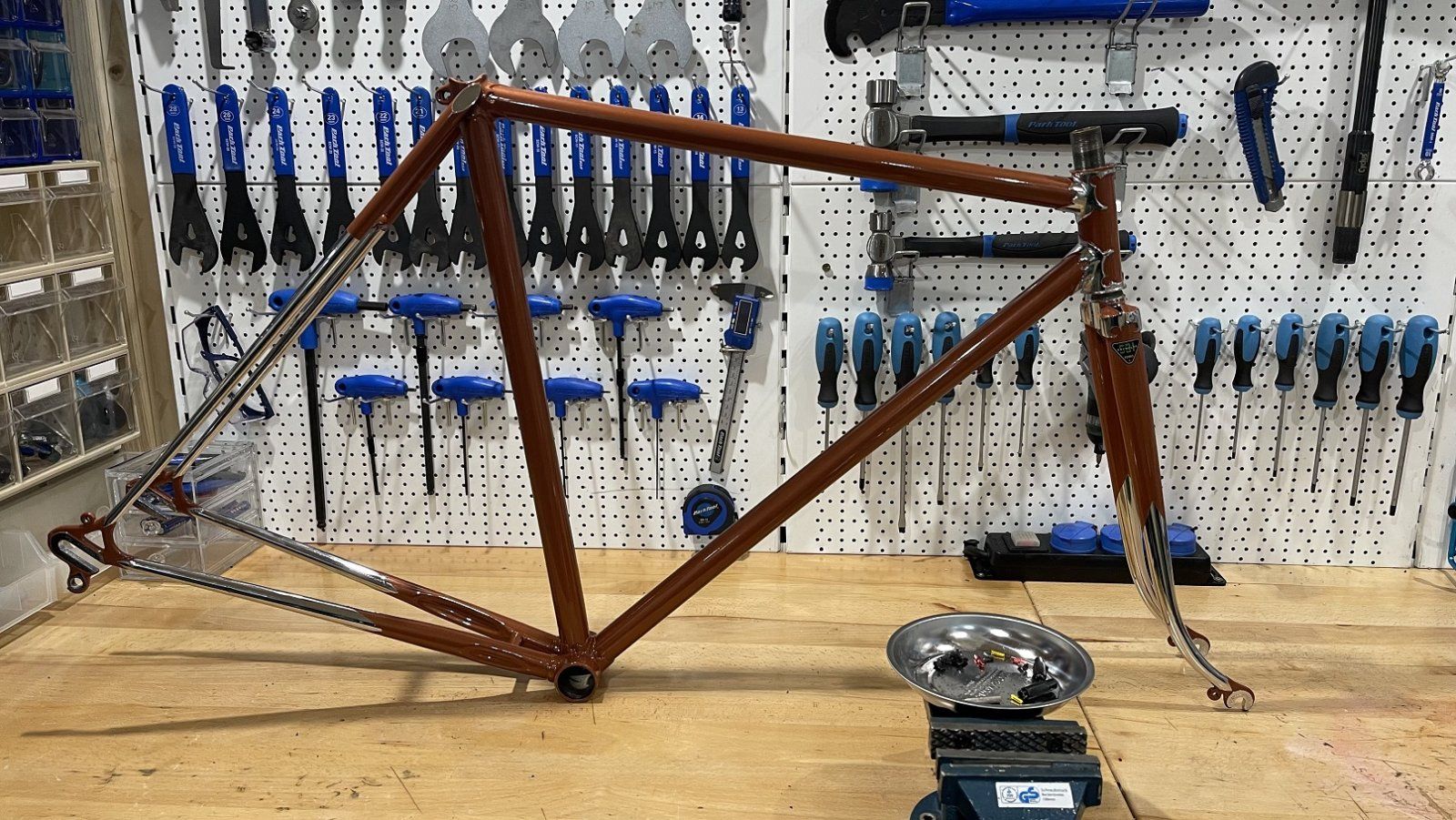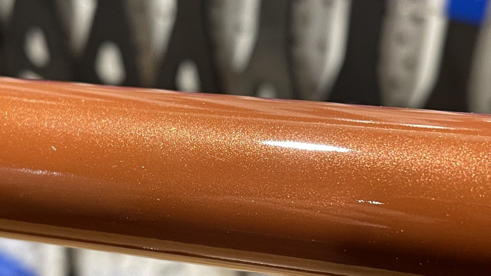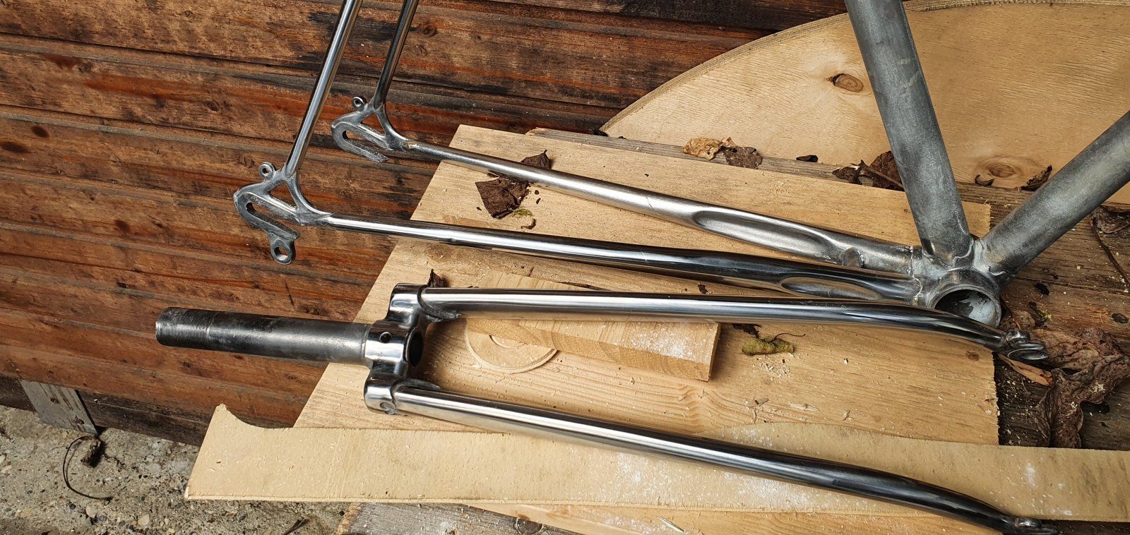An Muffen oder ZB Gabelkronen mit Pantografien sollte man auch mit schnellaufenden Filzscheiben nicht rumfummeln. In Verbindung mit Chrompolitur zB Autosol nimmt man auch mit Filz, die galvanisierte Schicht Chrom ganz schnell weg. Es fängt an den feinen Kanten an und ist dann auch ganz schnell zB zwischen den pantografierten Buchstaben ect.