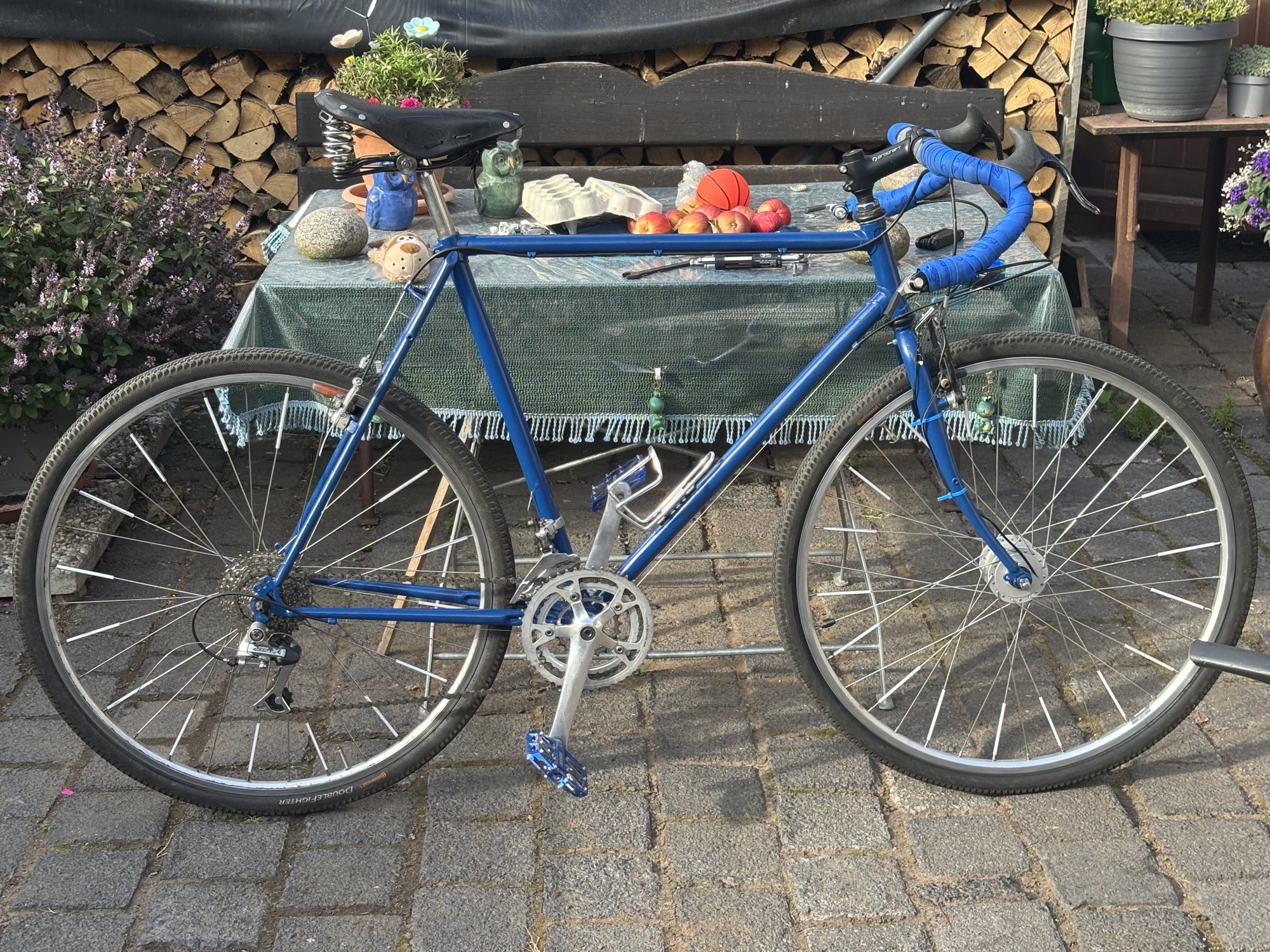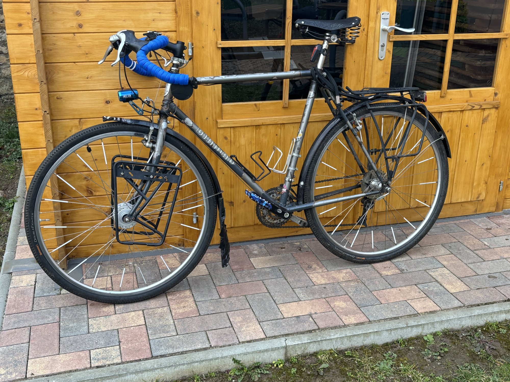 Vordere Bremse kommt noch anders, eingestellt ist noch nichts, aber die Richtung gefällt mir… immerhin wurde der an sich schöne Diamant-Rahmen gerettet.