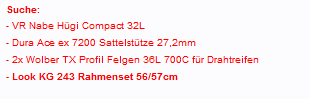 jetzt hab ichs. Bei Leuten die dieses Video kommentieren und gerade Mums "Rennrad" restaurieren dürfen, ohne anscheinend auch nur den Hauch einer Ahnung zu haben, hab ich keine Angst, dass Kulturgüter vernichtet werden.Ach so, ich hatte das quasi live miterlebt, dies hier: #1926.