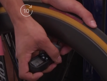 Doch, klar, wurde vom Kameraman eingefangen, bei den Szenen vor den Bussen.. hab mal zurückgespult, ob man es genauer sehen konnte. Der Mec hat den Prüfer recht lang drangehalten, bis sich der Druck im Display eingependelt hatte.. ist auch eindeutig sein Rad. Wieso, meinst Du, er müsste weniger fahren? Er hält sich einfach an die gute alte Regel, Körpergewicht durch 10.. plus bissl was drauf, damit es sich nicht zu platt anfühlt.