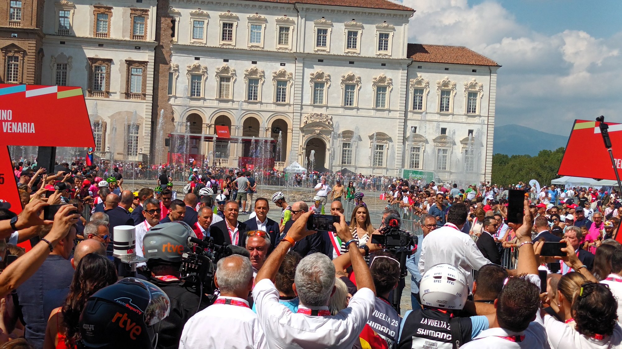 Wir waren am Samstag in Turin und haben uns für den Start als Visitorpoint entschieden, das war schon ein sehr cooles Spektakel. Direkt am Gitter neben dem Torbogen, ca 10 m vom Startbogen und der fürstlichen Prominenz entfernt. Da kamen alle vorbei zur Teamvorstellung und auf dem Weg zurück, und dann beim Start das komplette Feld locker an uns vorbei gerollt.
