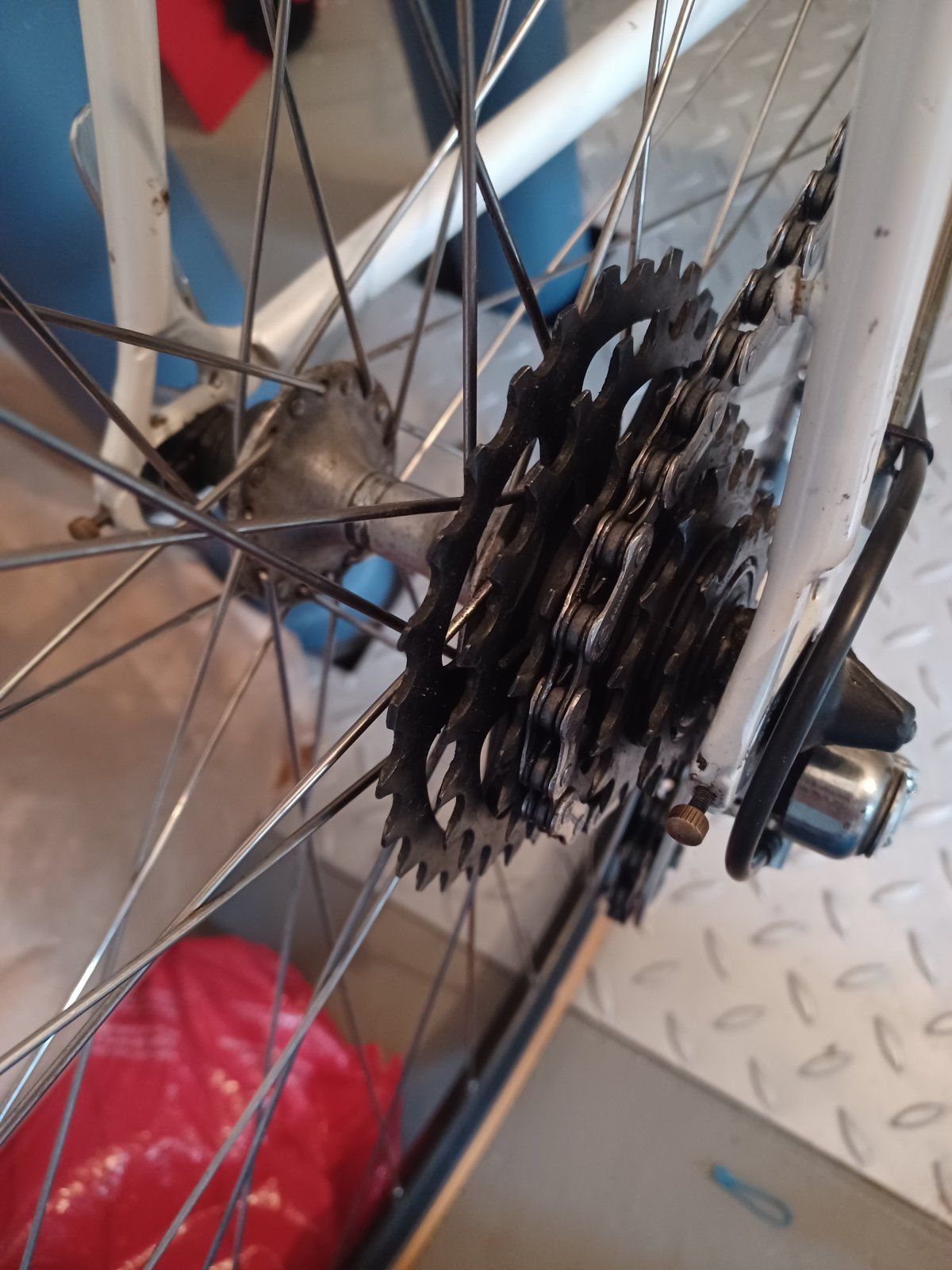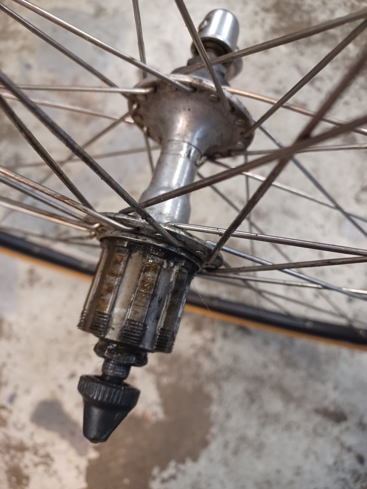Die Zahnkranzkassette auf dem Foto sieht nach 7speed Uniglide aus, bei der das kleinste Ritzel auf den Rotor aufgeschraubt wird.