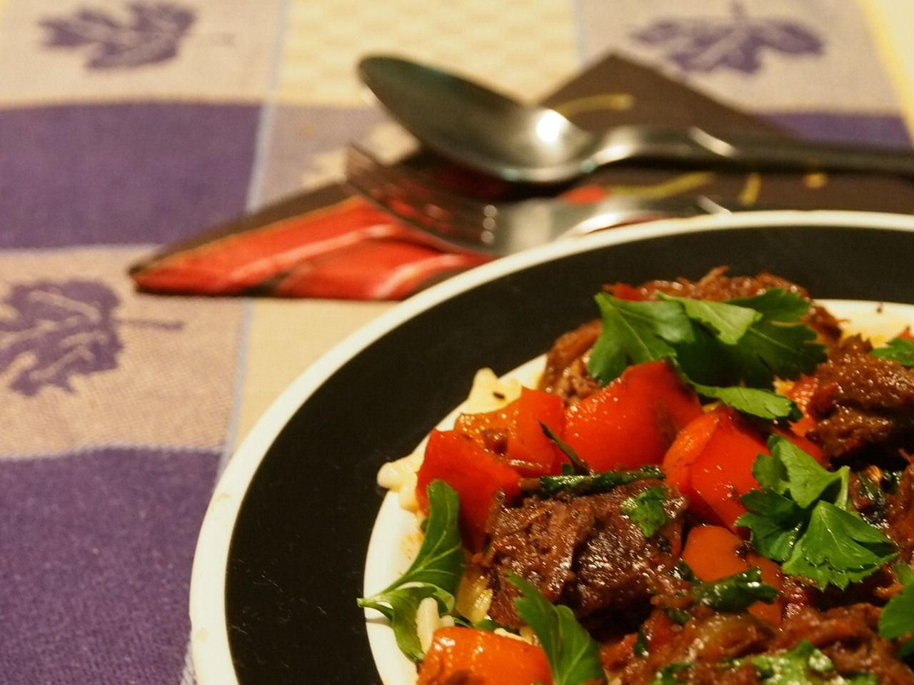 Ich gebe das an die Chefin weiter,es sah nicht nur lecker aus,was nicht immer bei uns der Fall ist,aber es schmeckte auch lecker.Jetzt fühl ich mich schlecht: schnelle Küche aus der Pfanne ist bei mir der Standardfall.