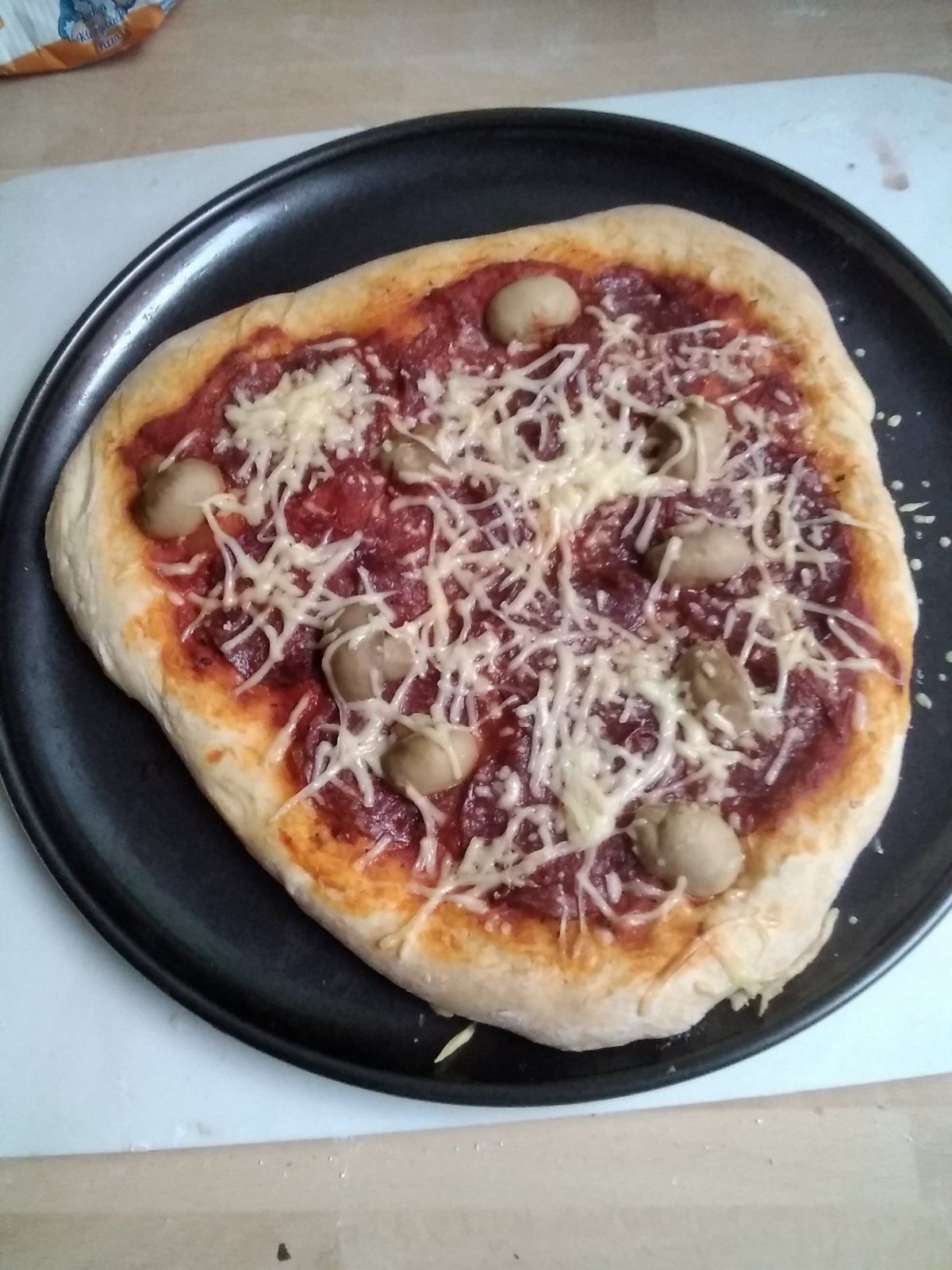 Ein wenig klein die Pizza.Ungarische Salamipizza mit selbst gemachter TomatensauceAnhang anzeigen 983777