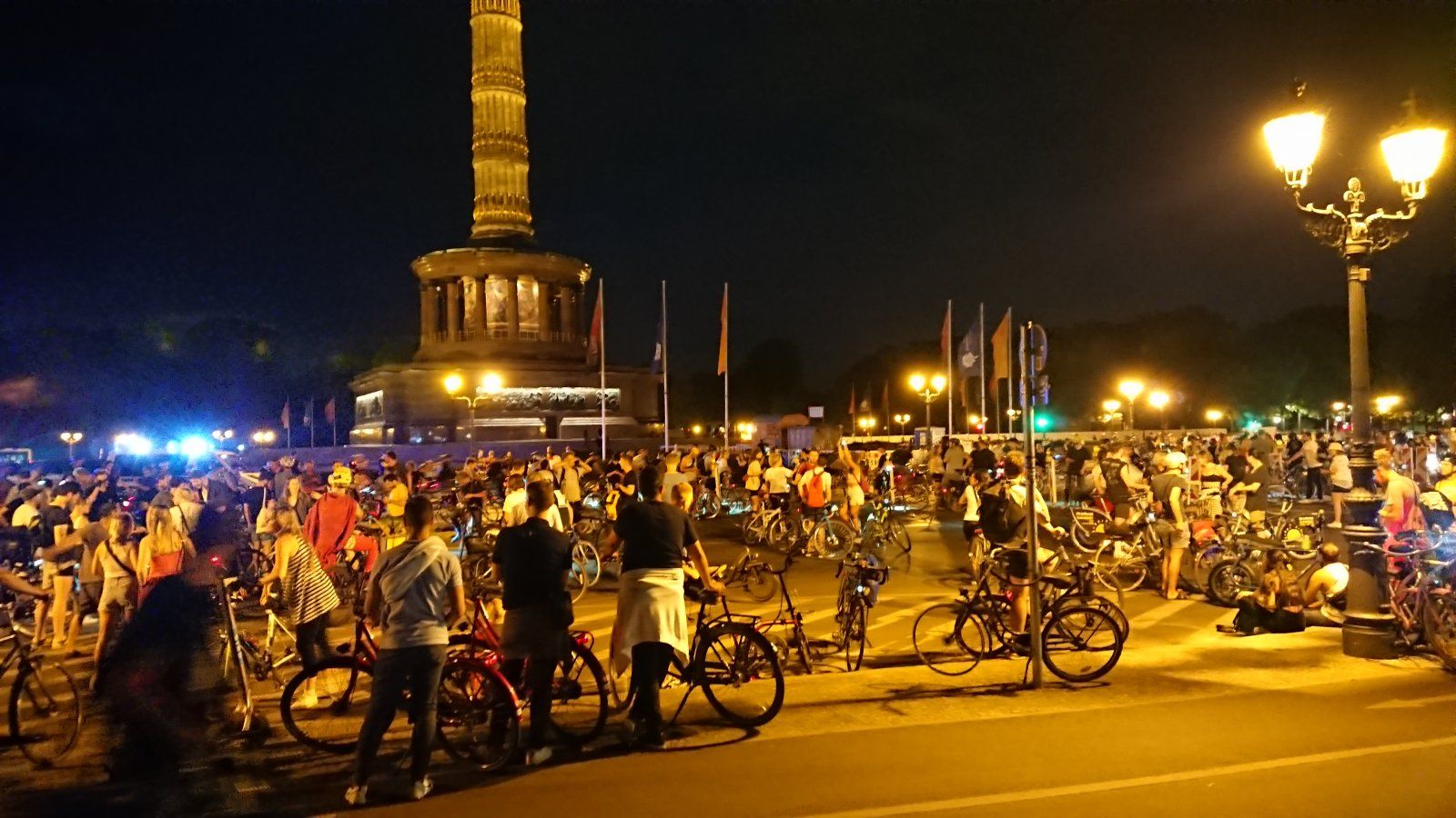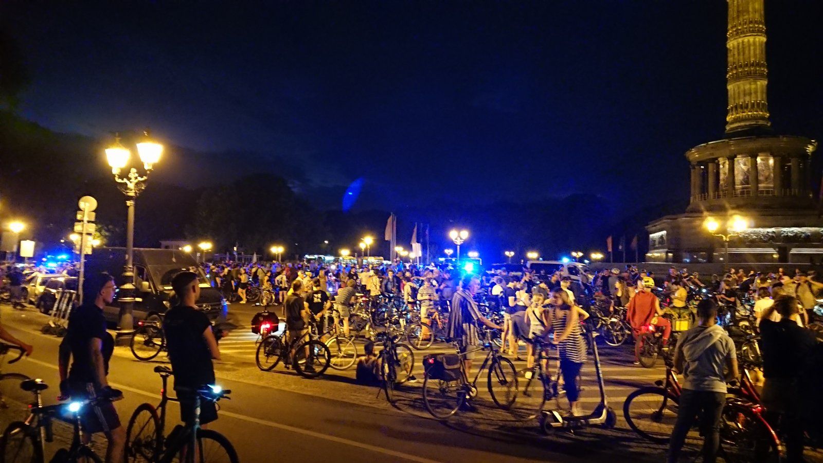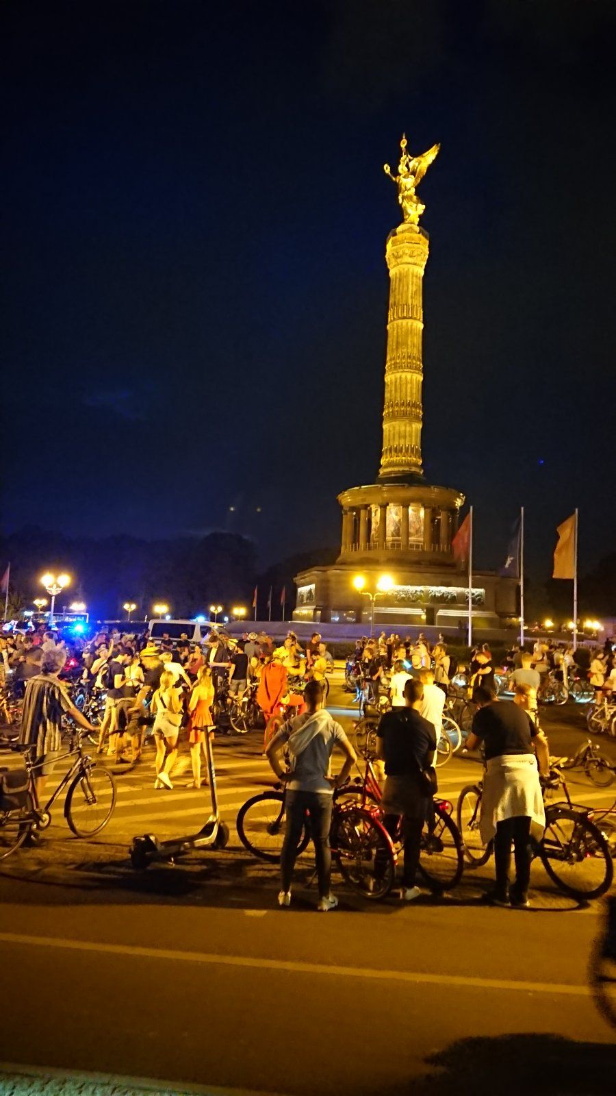 Die Strecke war recht nett und die Polizei ganz entspannt (begleitete uns und ließ uns gegen später mehrere Runden um die Goldelse drehen und sogar einen kurzen Moment Party machen).