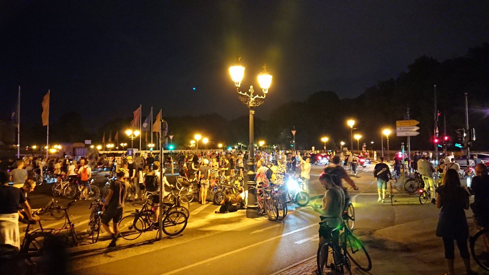 Ich gestern in Schweinfurt auch. Wir waren nur 6 (sechs) Radfahrer.Ich habe heute seit langem wieder mal an der CM (Critical Mass) in Berlin teilgenommen.
