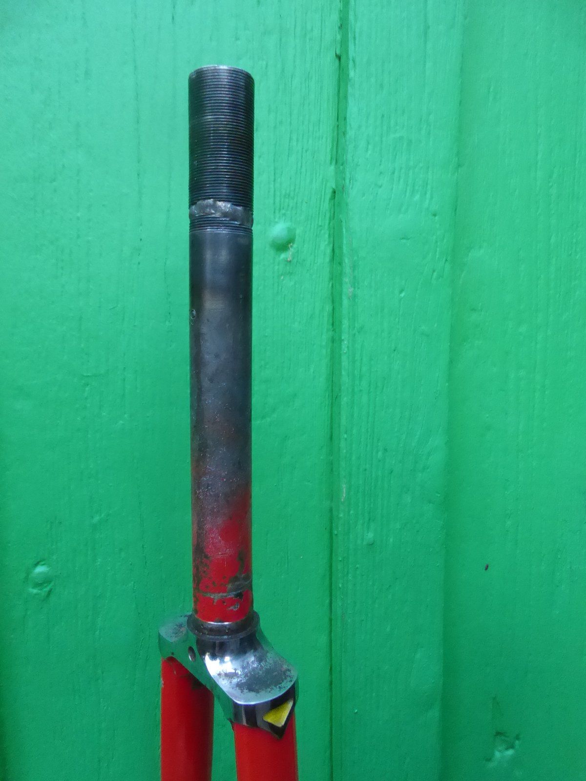 Aber vllt empfiehlt sich ein Zusatz in meinem Testament, dass die Räder alle bitte umgehend entsorgt werden dürfen, Grabbeigabe ist wohl nicht erlaubt. Da kommt ja einiges zusammen: zwei zurückgebogene Gabeln mit evtl gestauchten Rahmen(seit ich den CONCORDE von @Dolittle gesehen habe, ist mir das noch egaler), diese Gabel, verstellbare auf 26mm aufgeschliffene Vorbauten ...