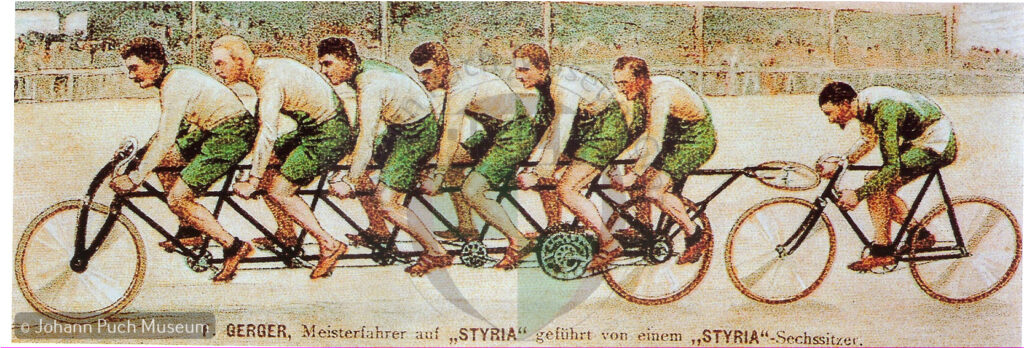 Da gibt es ein ganz nettes E-Book von Steve Wartenberg zu den Fahrrad-Obskuritäten aus der Zeit vor der Jahrhundertwende (aus dem sind auch die Bilder, neben Wikipedia und dem Puch-Museum) …