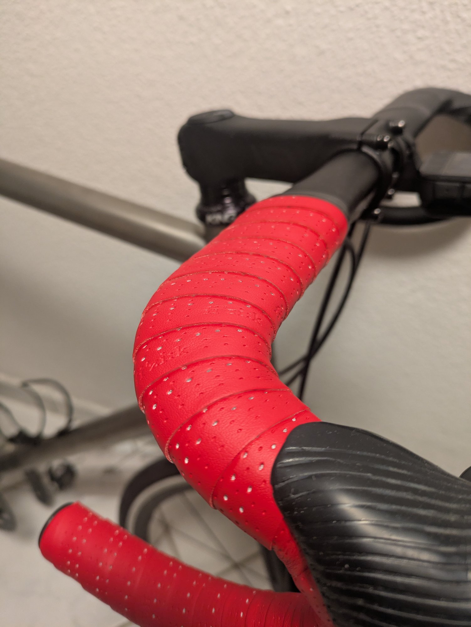 Meine ersten Versuche mit orangem Lenkerband. Warum der Vorbau so weit draußen und der Schnellspanner vorn verkehrt herum ist, weiß vermutlich nur der Vorbesitzer. Lang ists her...