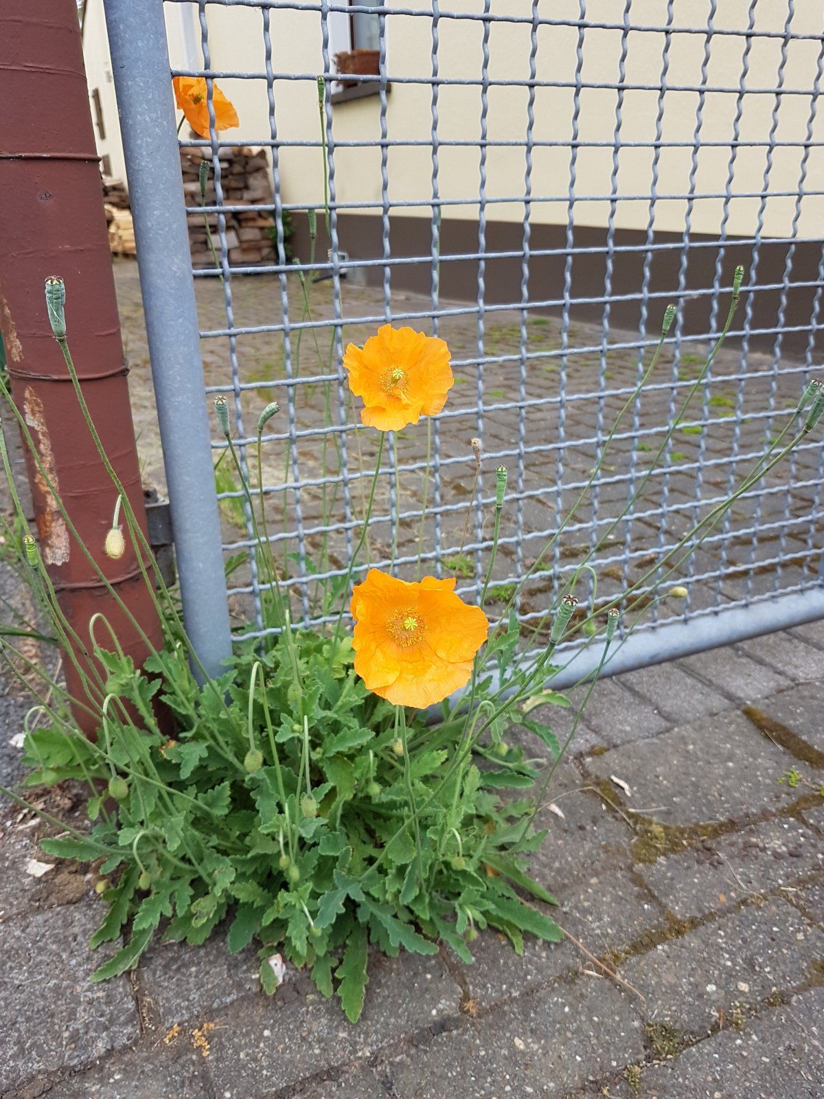 Ähnlich wie Akelei kann man den sibirischen Mohn auch mal im Pflaster in der Einfahrt wachsen lassen.