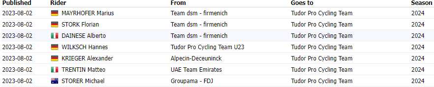 Tudor Procycling Team hat einige Transfers öffentlich gemacht! Sind paar Knaller dabei, insbesondere Storer, Dainese und Mayrhofer!