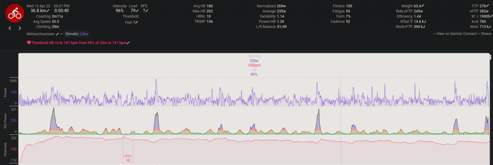 Ich als Trainingsweltmeister kann sagen, dass mir ein paar Rennen gut getan hättenDie Frage ob Wettkämpfe oder vergleichbare Belastungen strukturiertes Training ersetzen können, ist ein hier sehr beliebtes Thema für Grabenkämpfe und ich würde vorschlagen diese Büchse nicht wieder (in diesem Thread) zu öffnen.