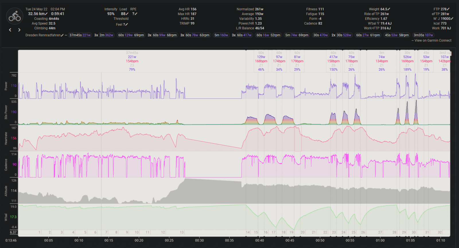 Heute mal die ersten Intervalle probiert. Hatte vor 3 Wochen Corona und steh seit einer Woche wieder im Training bzw bin erstmal locker gefahren. Heute die ersten Belastungen um zu schauen wie es mir so geht bei Belastung.