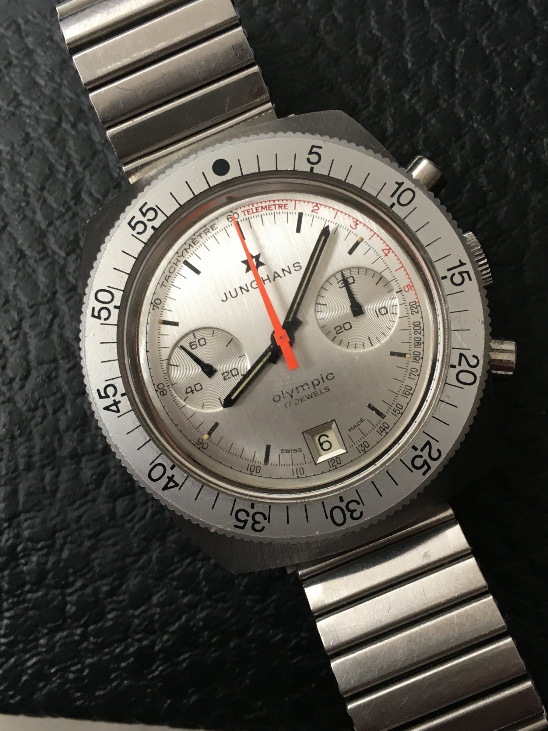 Extra für @Bianchi-Hilde mal ein auf die schnelle geschossenes, daher entsprechend schlechtes Bild, das aber das wesentliche zeigt, nämlich eine mit 34 mm Durchmesser schon recht große Panta HAU aus Mitte der 1960er, eingerahmt von zwei 42 mm Divern (Promaster und Amphibia)
