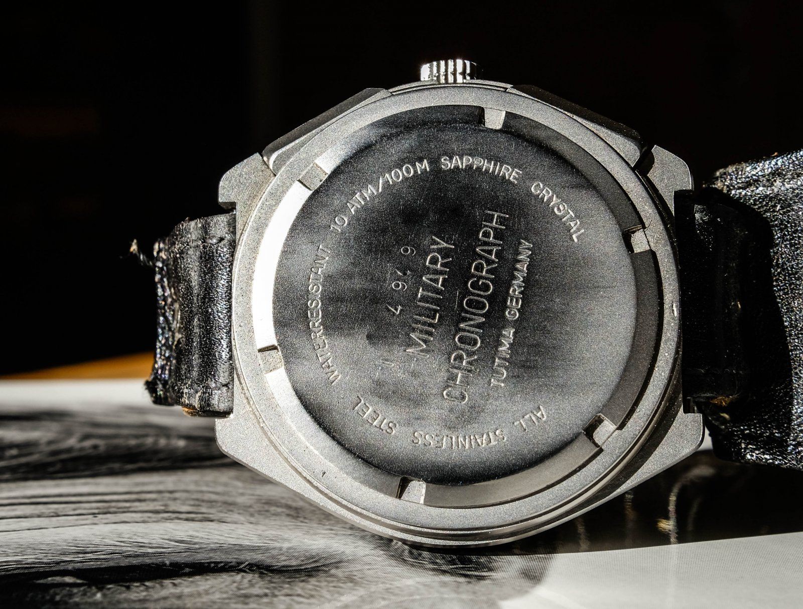 Richtig. Und die Inschrift BUND. Nach ein paar Jährchen der Produktion dachte sich Tutima dann aber, dass man die dicken Dinger auch zivil über den gut sortierten Fachhandel vermarkten kann. Meine ist eben eine zivile!
