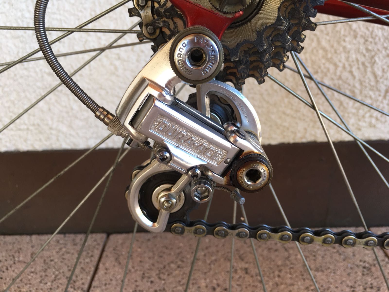 Es ist eine komplette dura ace 7200 verbaut, ein Philippe Vorbau und Lenker, reynolds 531, Sattel Arius Gran Carrera Special, Lrs Argent 10