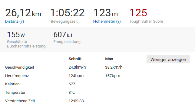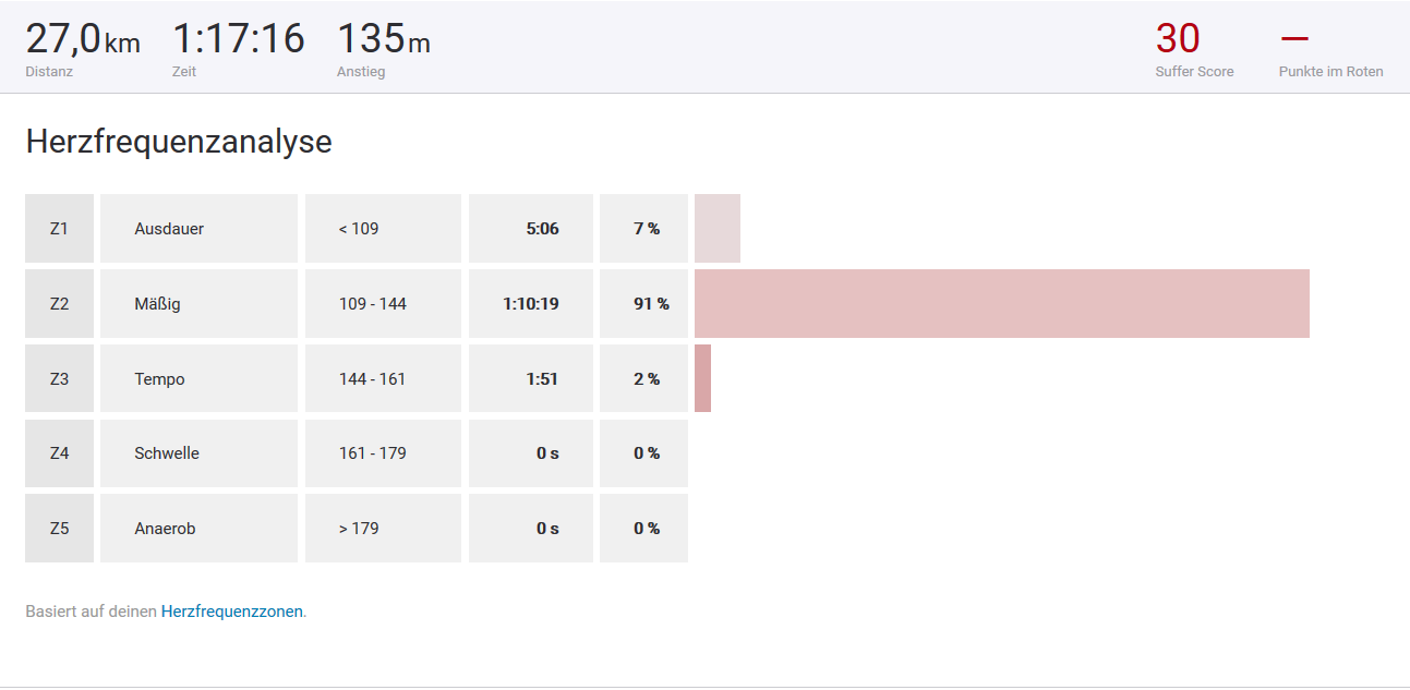 Der Herzfrequenz basierte Suffer Score ist astronomisch hoch. Damit ist gemeint, dass Strecken die zuvor einen Score von lediglich 30-40 besaßen, nun einen Suffer Score von 120 bei gleicher oder sogar niedriger Herzfrequenz/Tempo/Streckenlänge aufweisen.