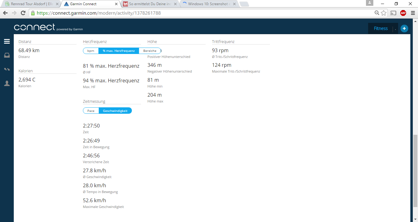 Heute nachmittag noch ne Runde gedreht, mit Fokus auf die Trittfrequenz:
