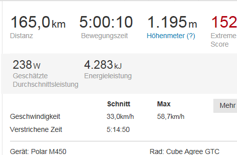 Normalerweise sind die Runden nach Feierabend nicht länger als 60-70km :/