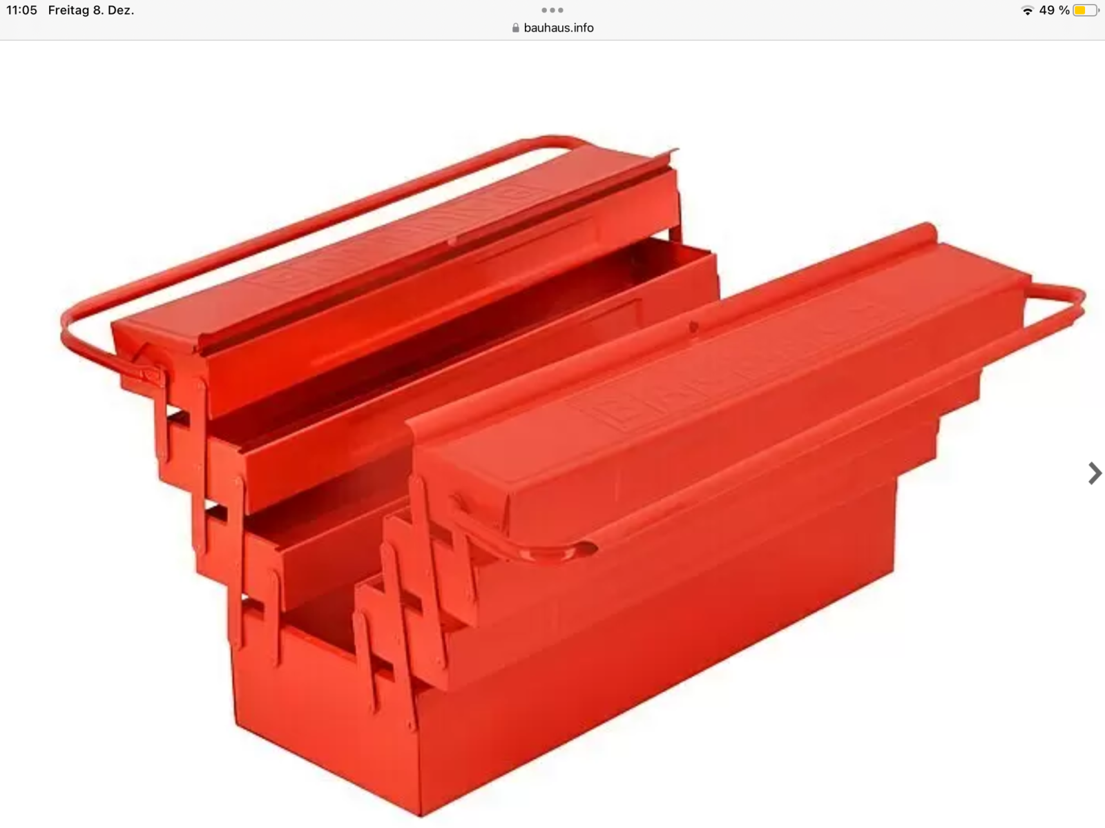 Ich war jetzt in zwei Baumärkten (Hellweg und Bauhaus), deren Werkzeugkoffer waren alle sehr wacklig und haben einen guten Eindruck gemacht.