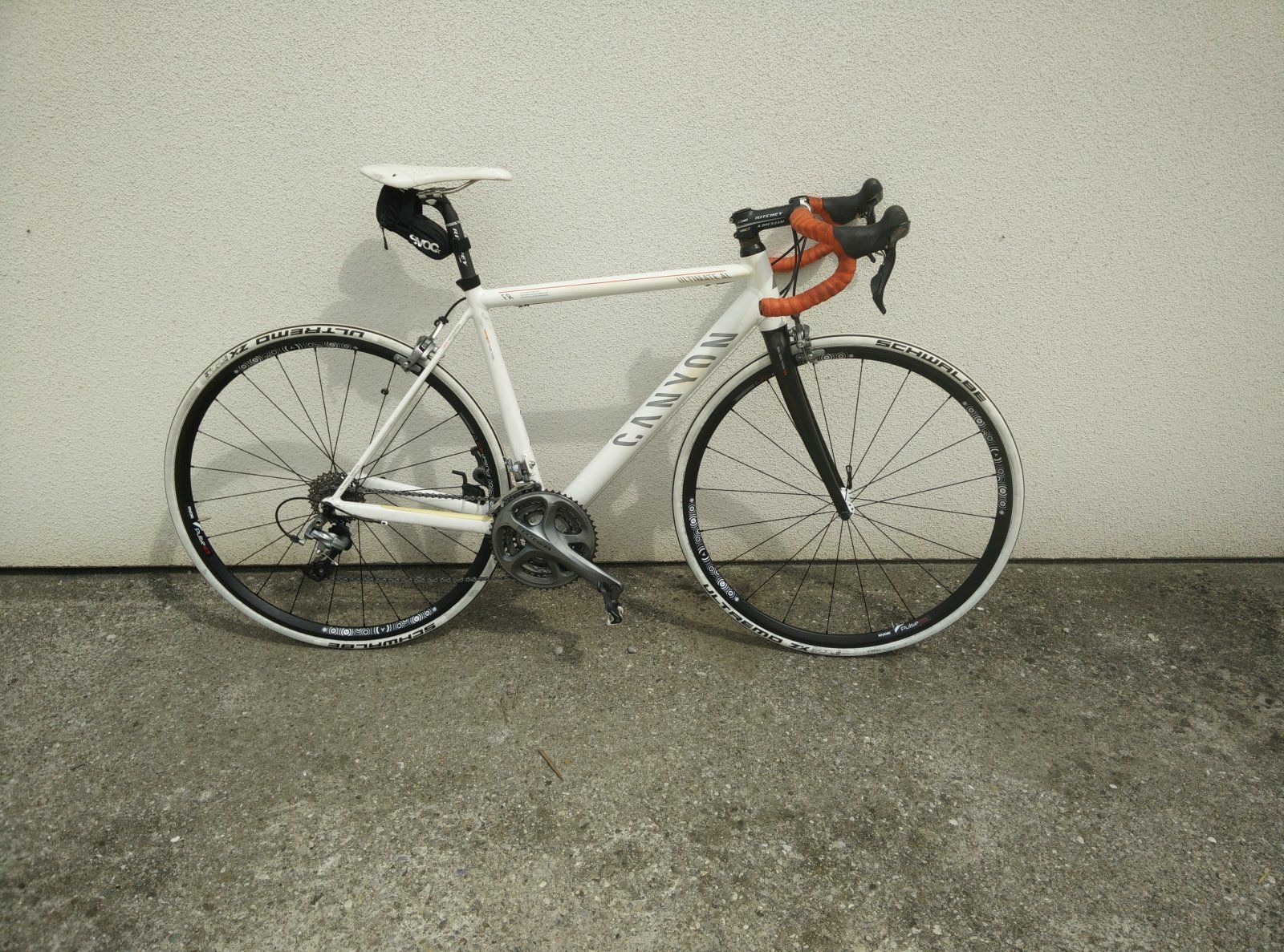 Falls es hilft: Es ist ein weisses Canyon Ultimate Alurahmen Größe S mit Ultegra 2 x 10fach, Citec 3000 Aerofelgen, Neupreis ca. 1600€ und ich denke zwischen 5 und 7 Jahre alt, aber ich kann mir von ihr die Rechnung raussuchen lassen.